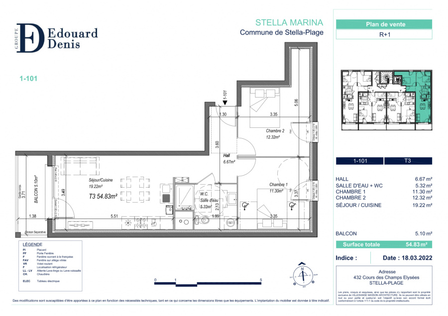Appartement 3 pièce(s) 2 chambre(s) 54.35 m²