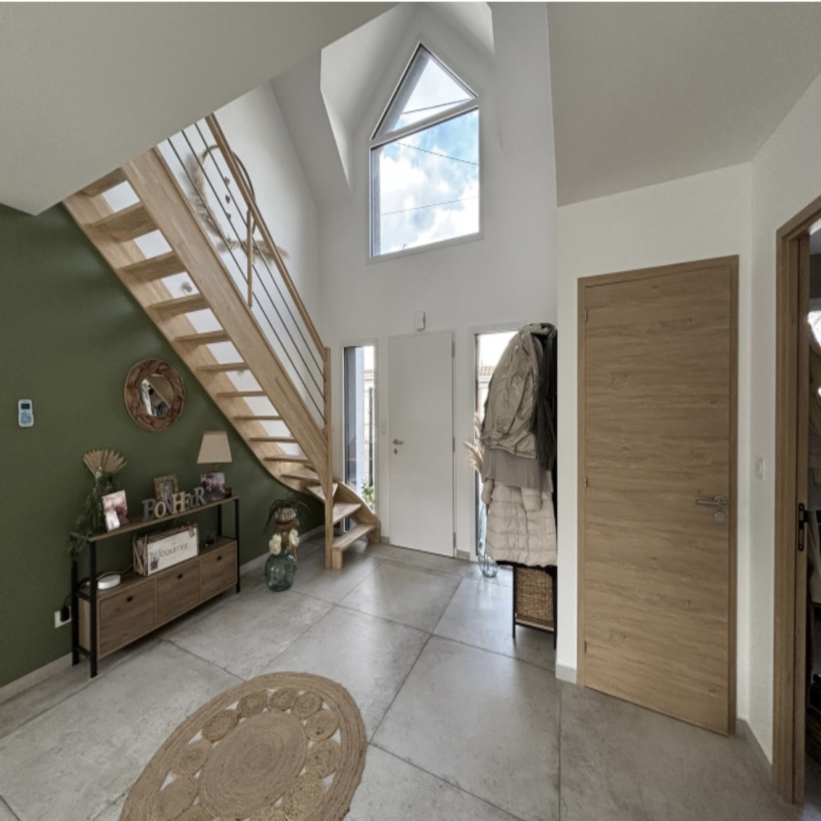 Dans le coeur du village de VERTON, nous vous proposons en location meublée cette belle maison individuelle et trés luminueuse de 2022 vous offrant 146 m² de confort et de modernité. Vous serez tout de suite séduit par cette piéce de vie de 76 m² avec sa cuisine entiérement équipée ouverte sur le séjour, salle de bains avec baignoire Balnéothérapie et douche balnéo ouvrant sur un dressing de 7 m², toilette indépendant, cellier avec emplacement machine à laver et séche-linge, ballon d'eau chaude thermodynamique. (Possibilité de créer une chambre en rez-de-chaussée). A l'étage : palier desservant 4 chambres dont une avec salle de douches et toilette. Garage avec porte électrique -Terrasse pavée plein sud - jardin entiérement clôturé - 6 places de parking - double vitrage avec volets électriques et vitres miroirs sans tain - cheminée à granulés de la marque Extraflame - adoucisseur d'eau - système de surveillance par caméras. Tout-à-l'égout et fibre optique.