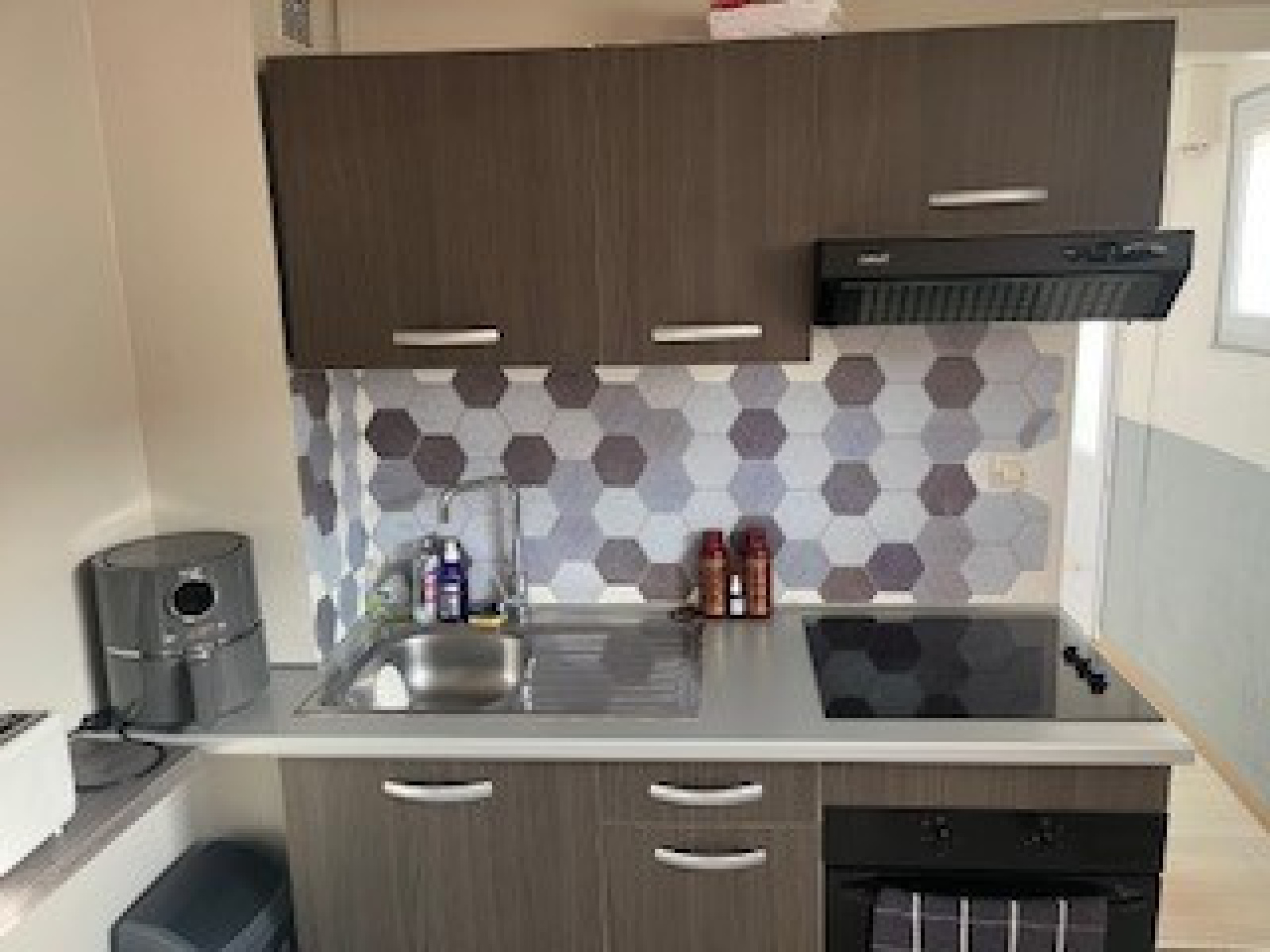 Appartement de 32.70 m2 situé au RDC comprenant : séjour-salon avec coin cuisine aménagée et équipée (four, plaques, hotte et frigidaire), salle d'eau, wc séparé, chambre avec rangement. Ensemble en parfait état et dépendances.