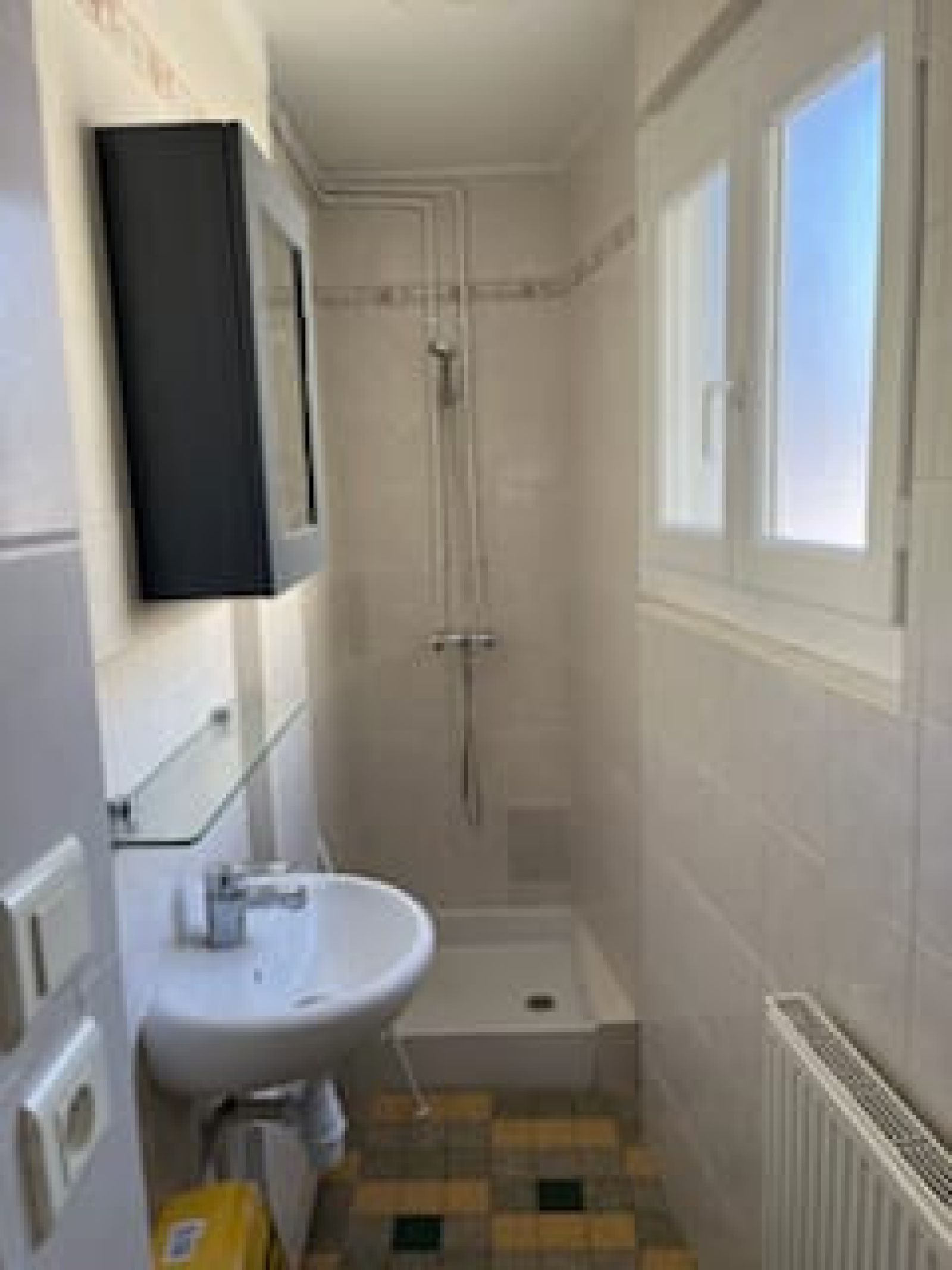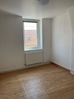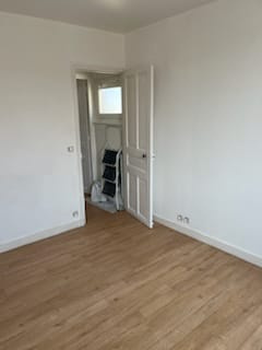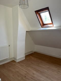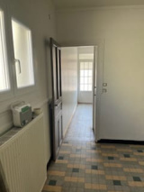 Séjour, cuisine aménagée, salle d'eau, wc. Etage : deux chambres. Courette. Ensemble en bon état . Chauffage au gaz de ville. Libre le 1er avril 2026.