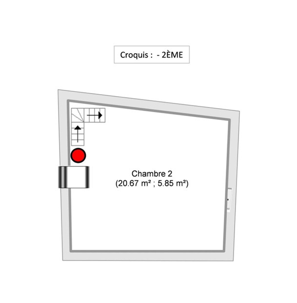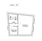 Le premier étage se compose d’une chambre et d’une salle d’eau avec WC.