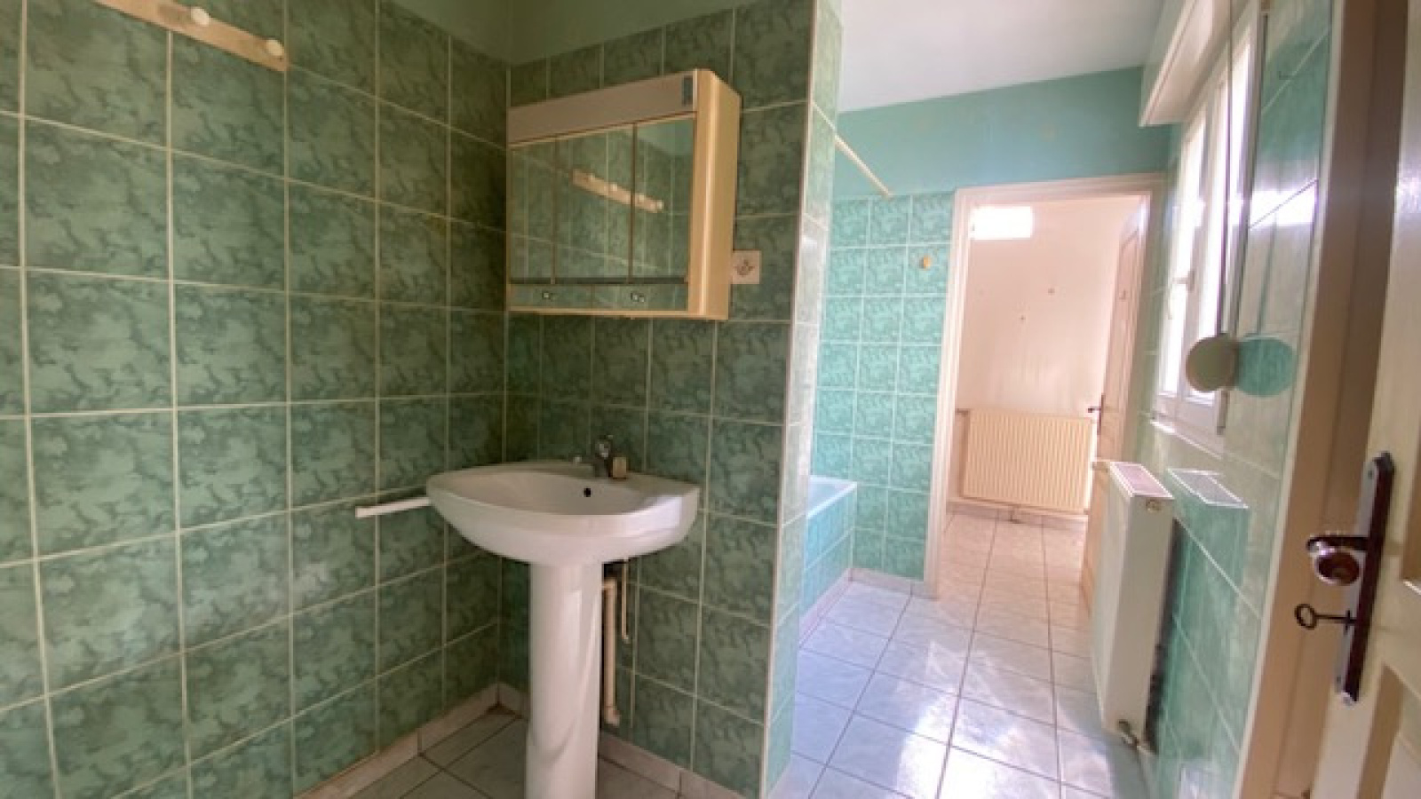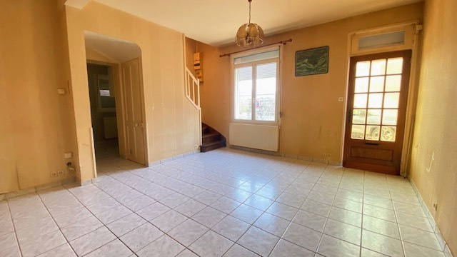 Axe gare, port, commerces, maison de ville semi-individuelle composée d'une unité de vie, une cuisine, une salle de bains, wc. A l'étage : palier, deux chambres.
