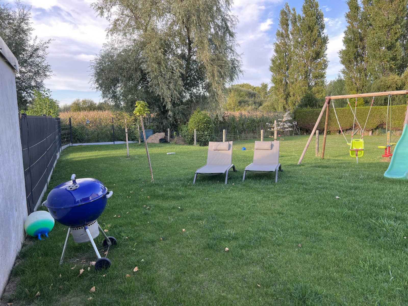 Un garage, une terrasse, un jardin clos sur environ 750m²