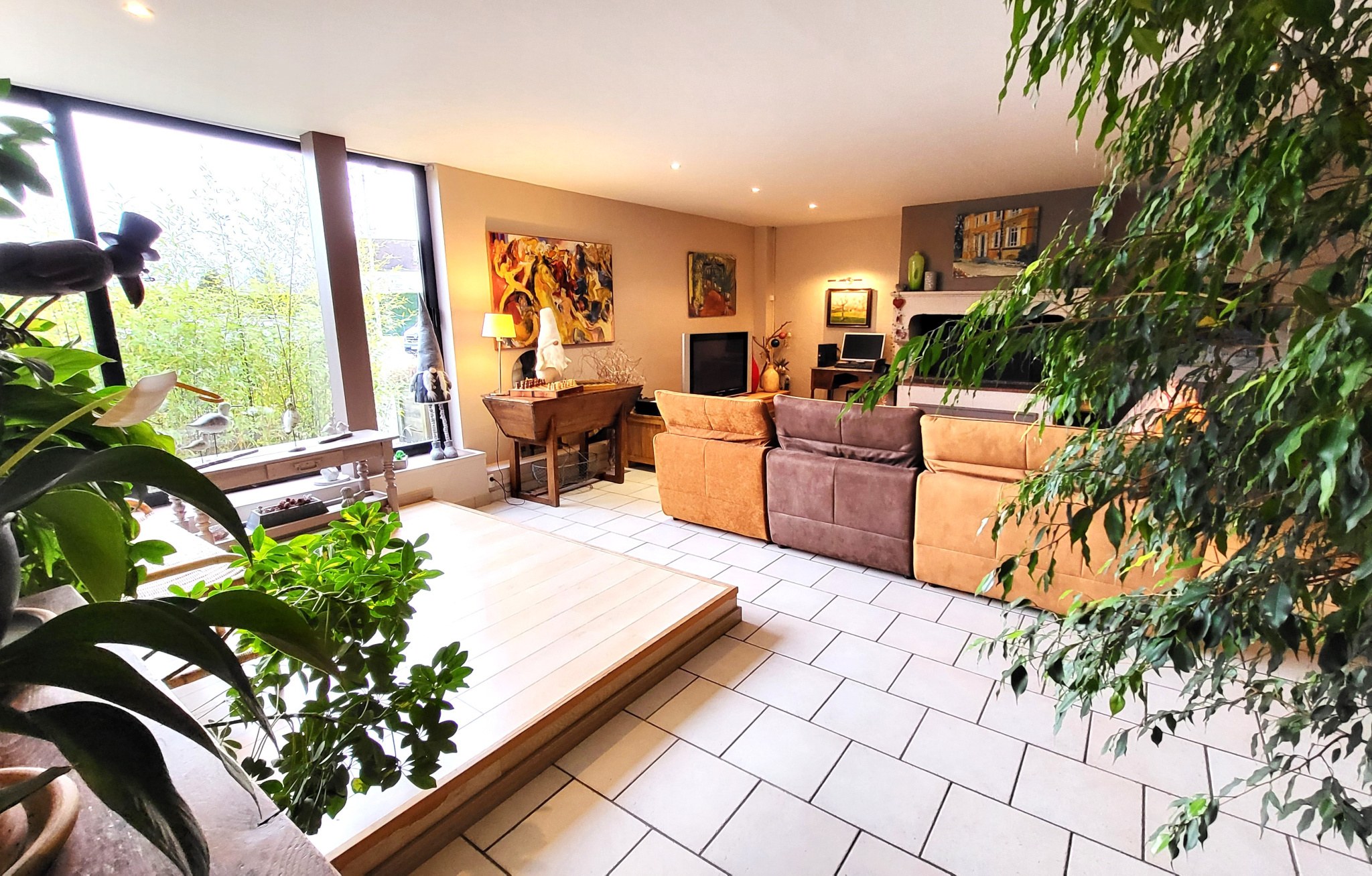 - vaste séjour traversant (52 m²) incluant l'espace cuisine aménagée et équipée "semi-pro", le tout ouvrant sur la terrasse, le jardin et la piscine dotée d'une couverture télescopique,