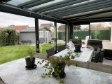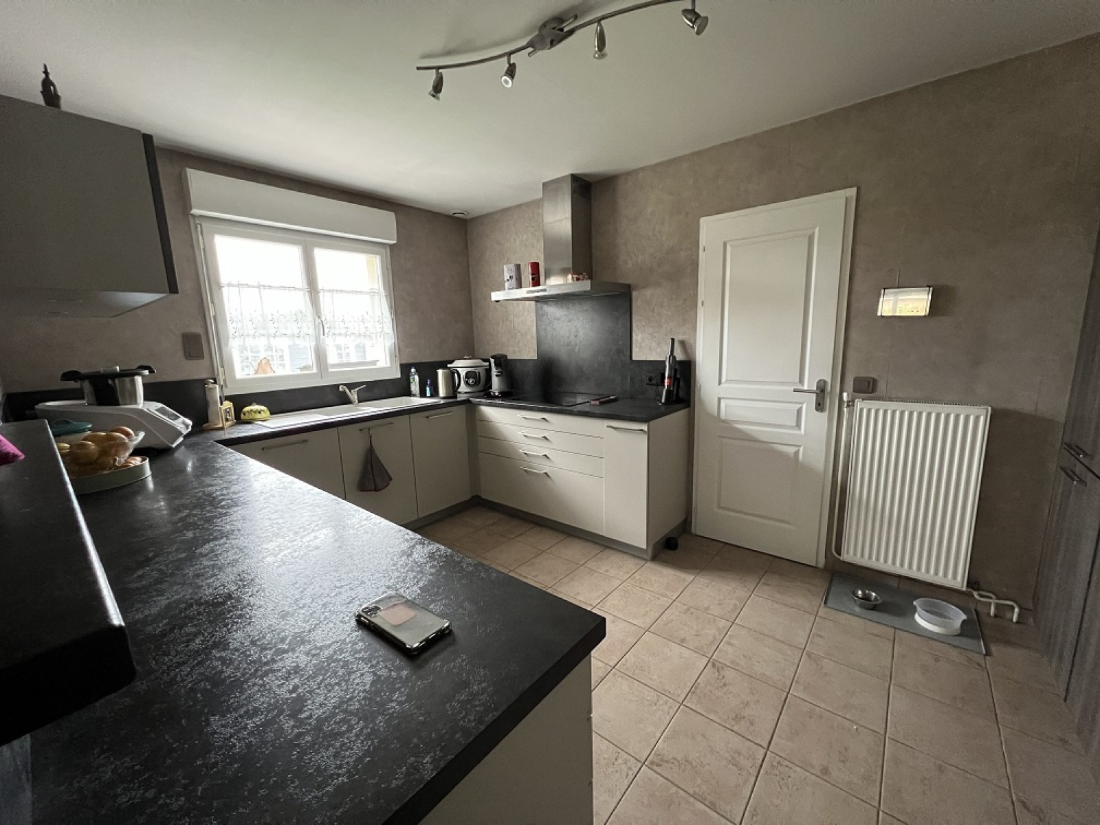 Elle comprend un séjour de 32m², une cuisine équipée de 12m², une chambre et une salle de bain et à l'étage un grand palier et 3 chambres. Elle dispose également d'une véranda, d'un garage, d'une terrasse carrelée et d'un jardin clos avec abri, le tout sur 674m².