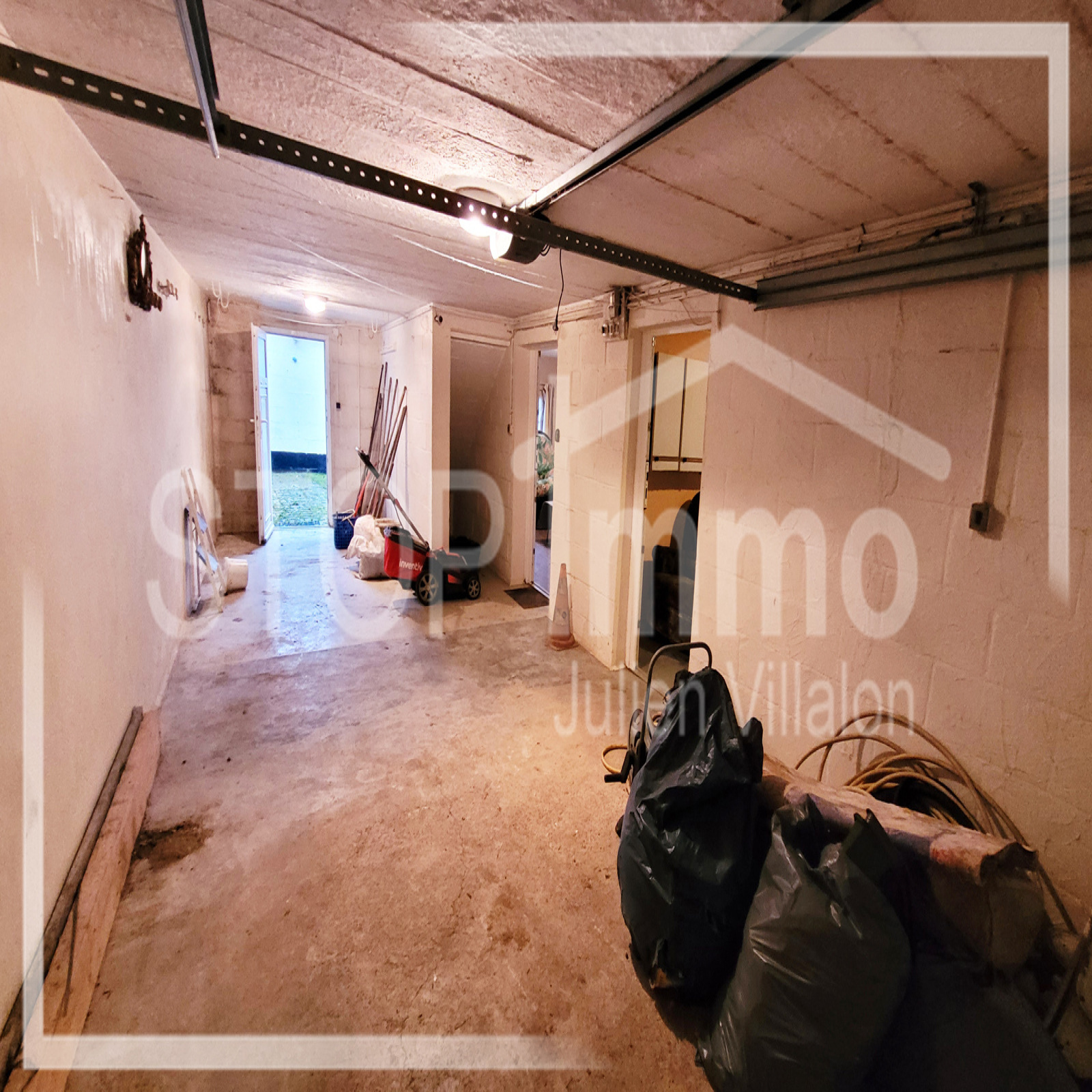 garage traversant de plus de 26 m², avec porte automatisée sur rue, et porte fenêtre sur la cour.