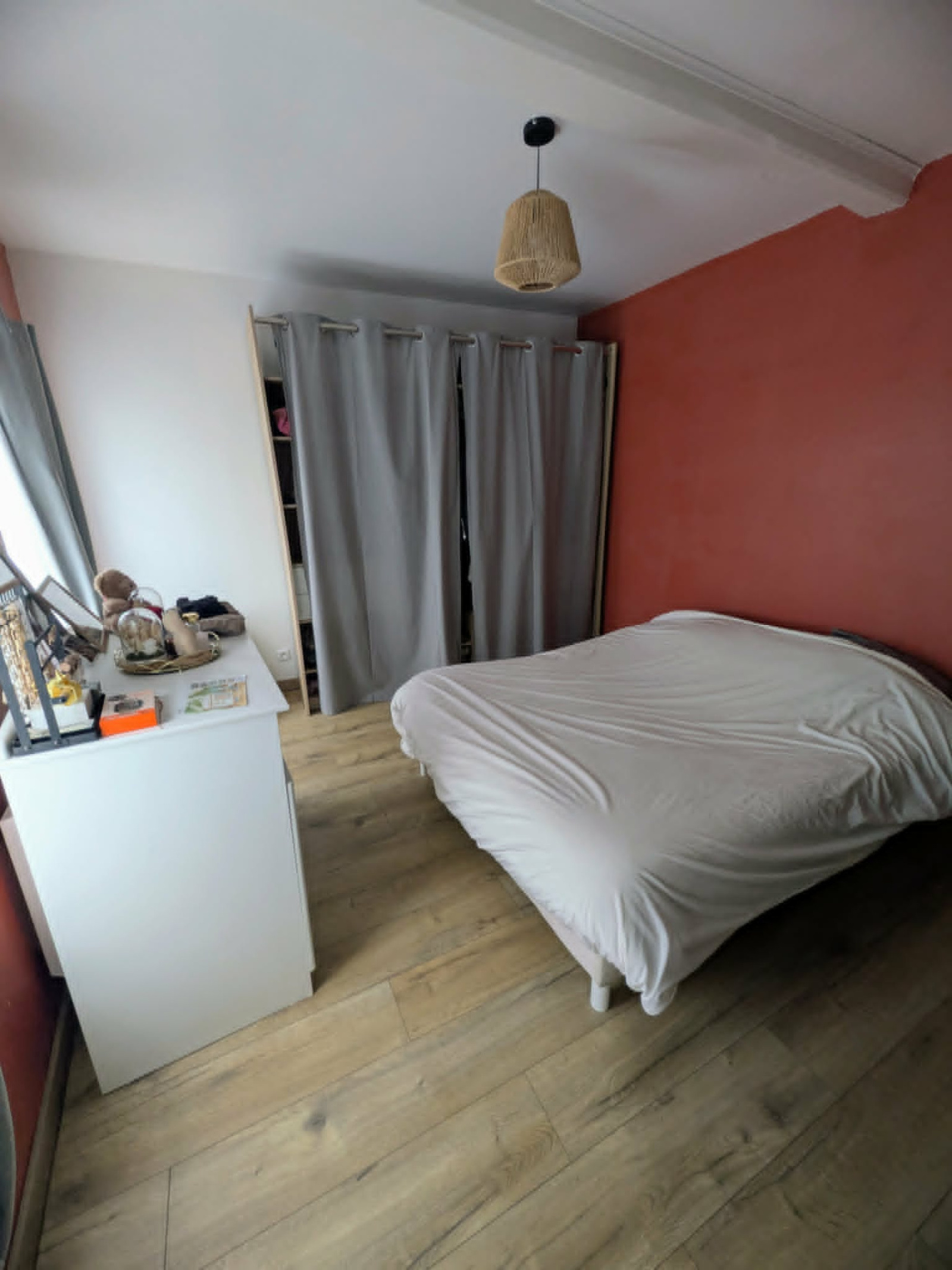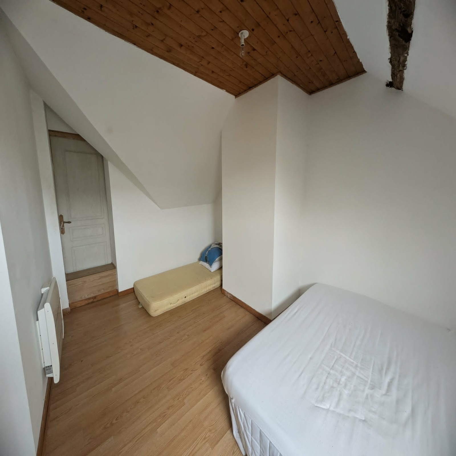 A l'étage, un palier dessert deux chambres, un wc ainsi qu'un grenieroffrant un espace de rangement ou un potentiel d'aménagement.