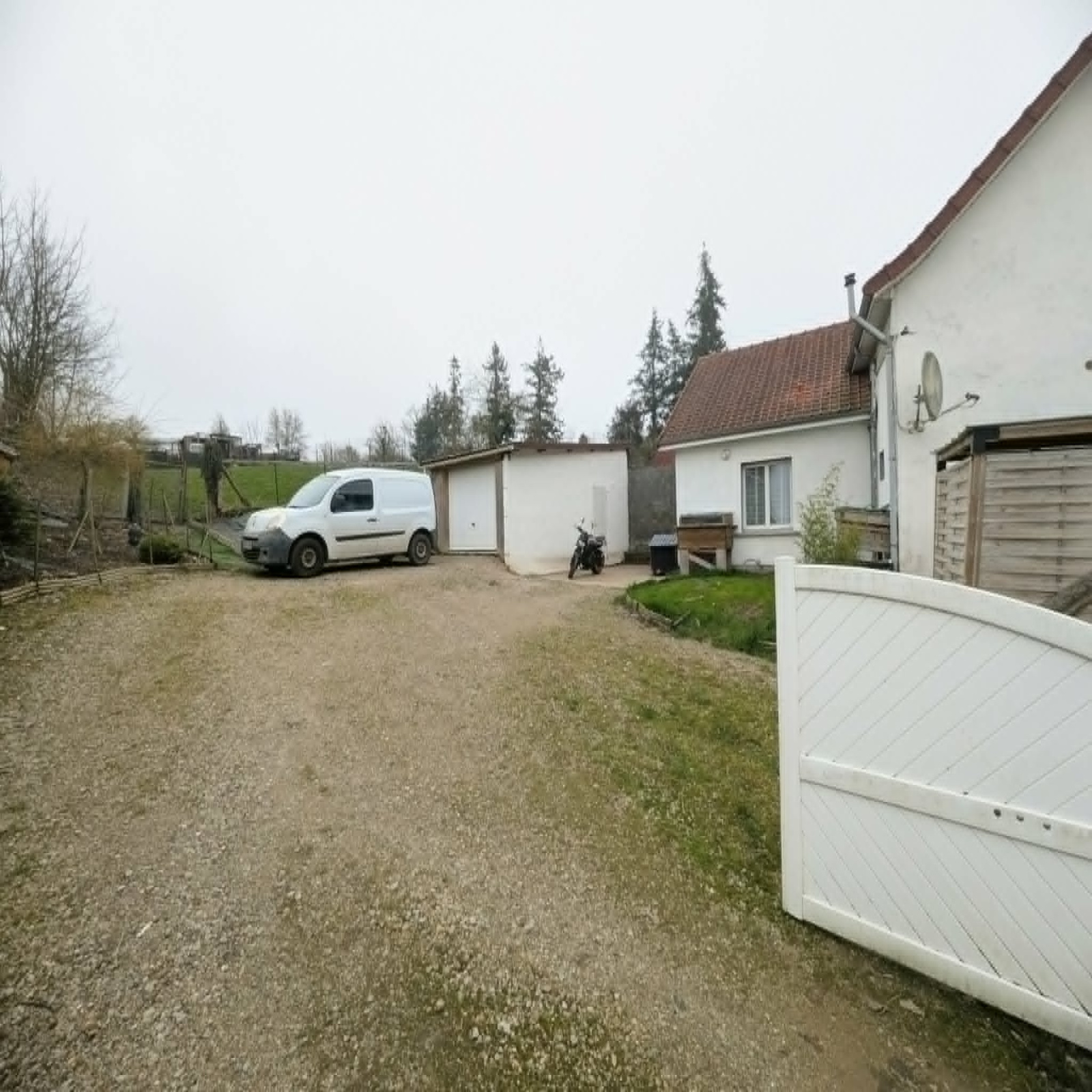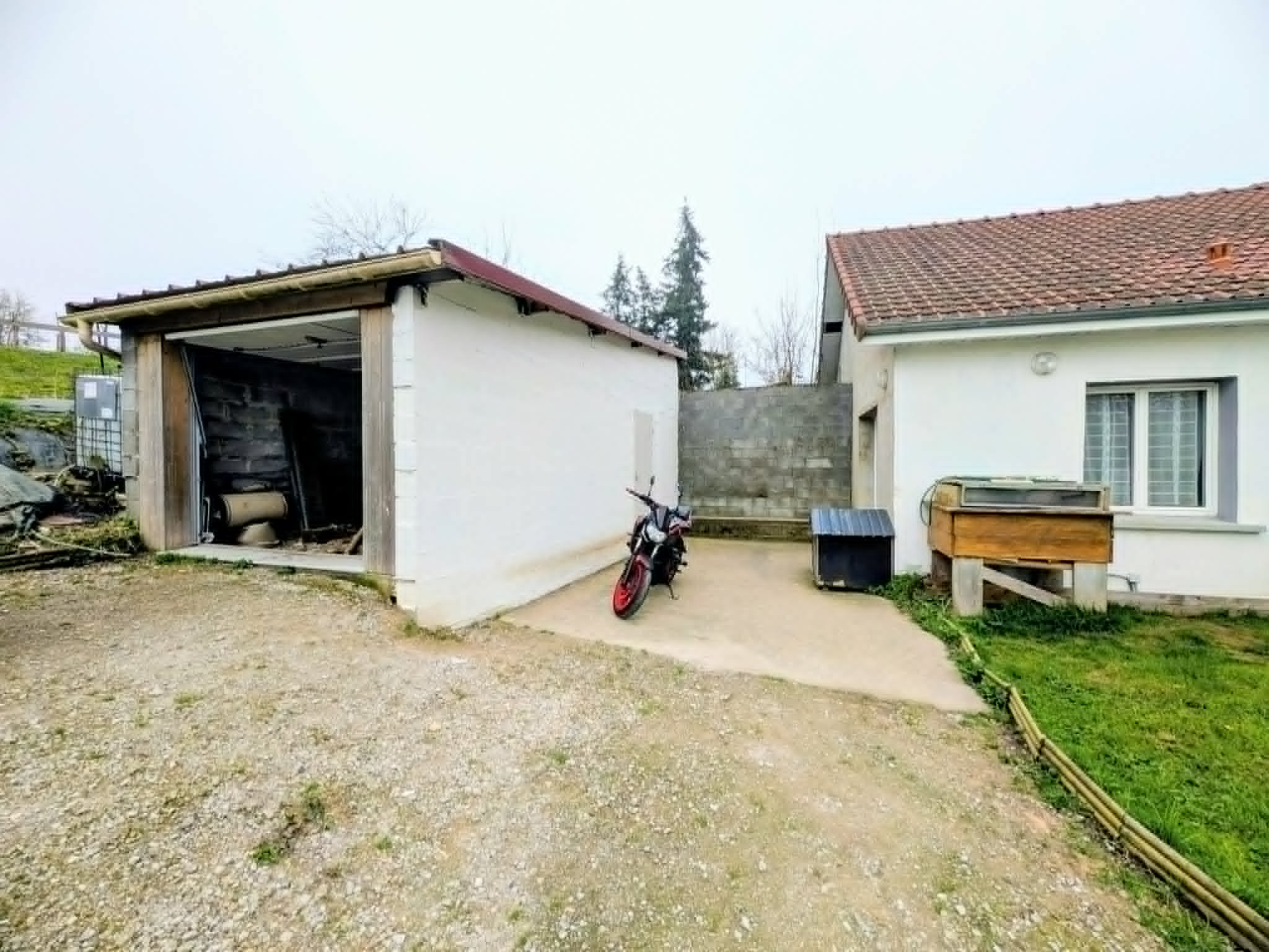 A l'extérieur, la propriété dispose d'une grande cour permmettant de stationner plusieurs véhicules, d'un garage, d'une petite dépendance, ainsi que d'un vaste terrain.