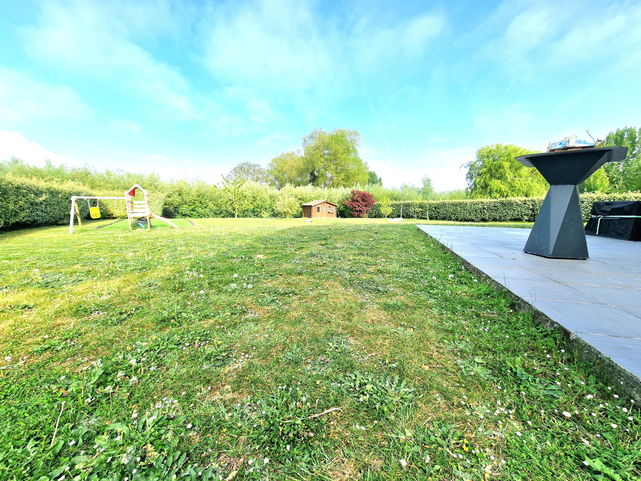 Une double terrasse en "L" de 50 m² environ pour profiter pleinement des journées ensoleillées équipée d'un store banne motorisé - Un jardin verdoyant, entretenu, sans vis à vis et totalement clos - Un abris de jardin sur dalle béton - Portail motorisé à l'entrée de la propriété avec cour en enrobé.