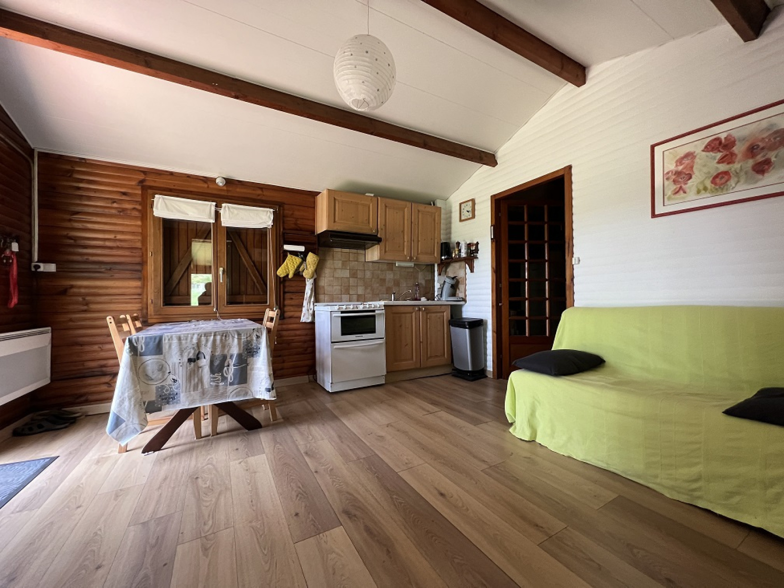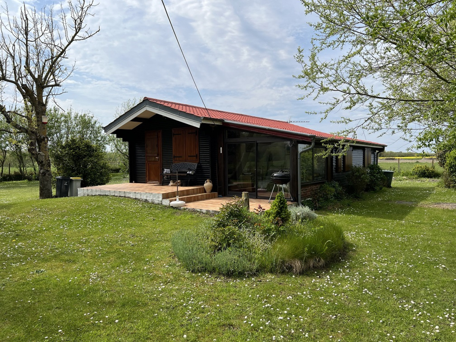 En exclusivité à GROFFLIERS, nous vous proposons à l'achat cette maison en bois située dans un havre de verdure et de paix. Elle dispose d'une pièce de vie séjour/cuisine, d'une salle de douche, d'un cellier, de 2 chambres et d'une véranda, le tout sur un terrain cloturé et arboré d'environ 1300m²