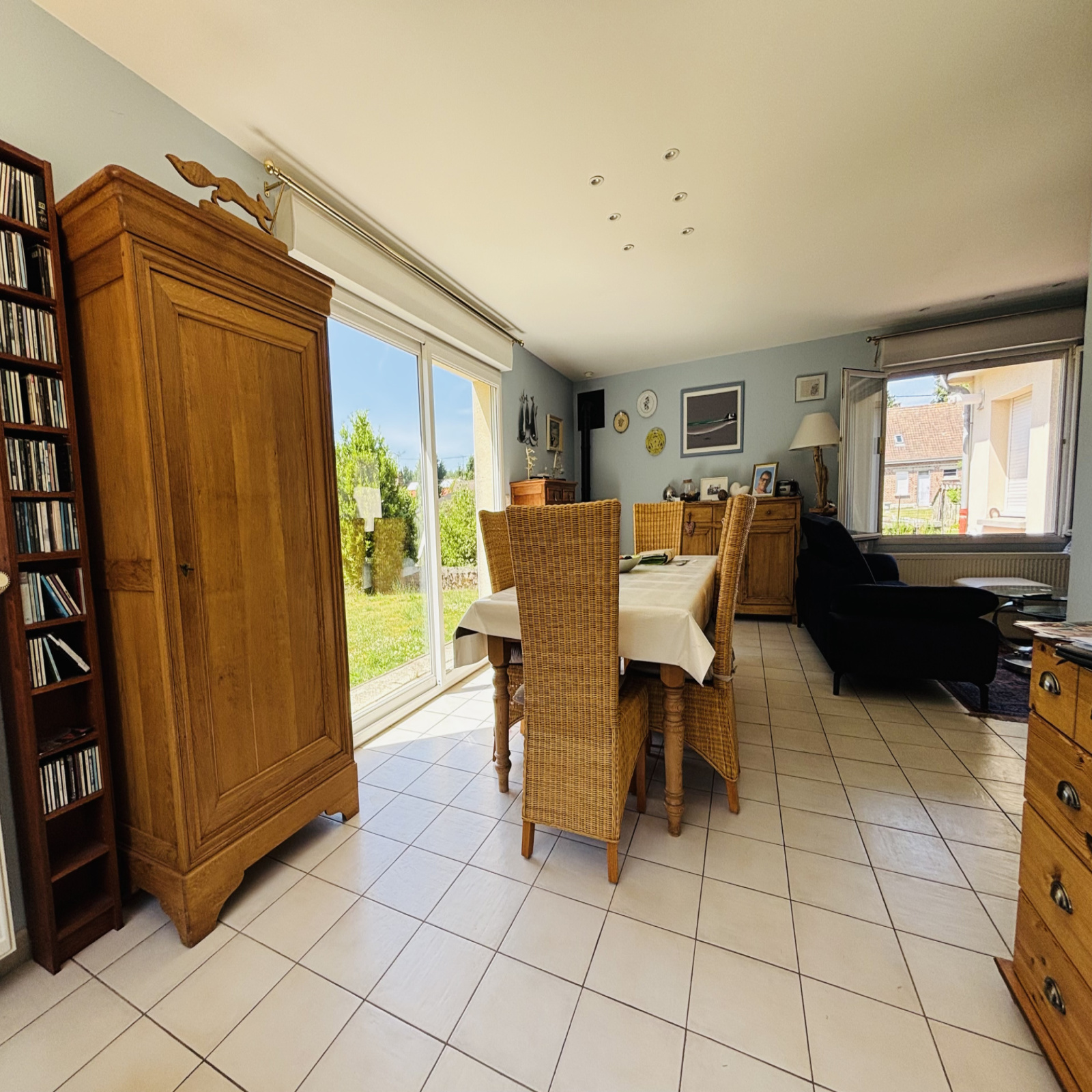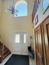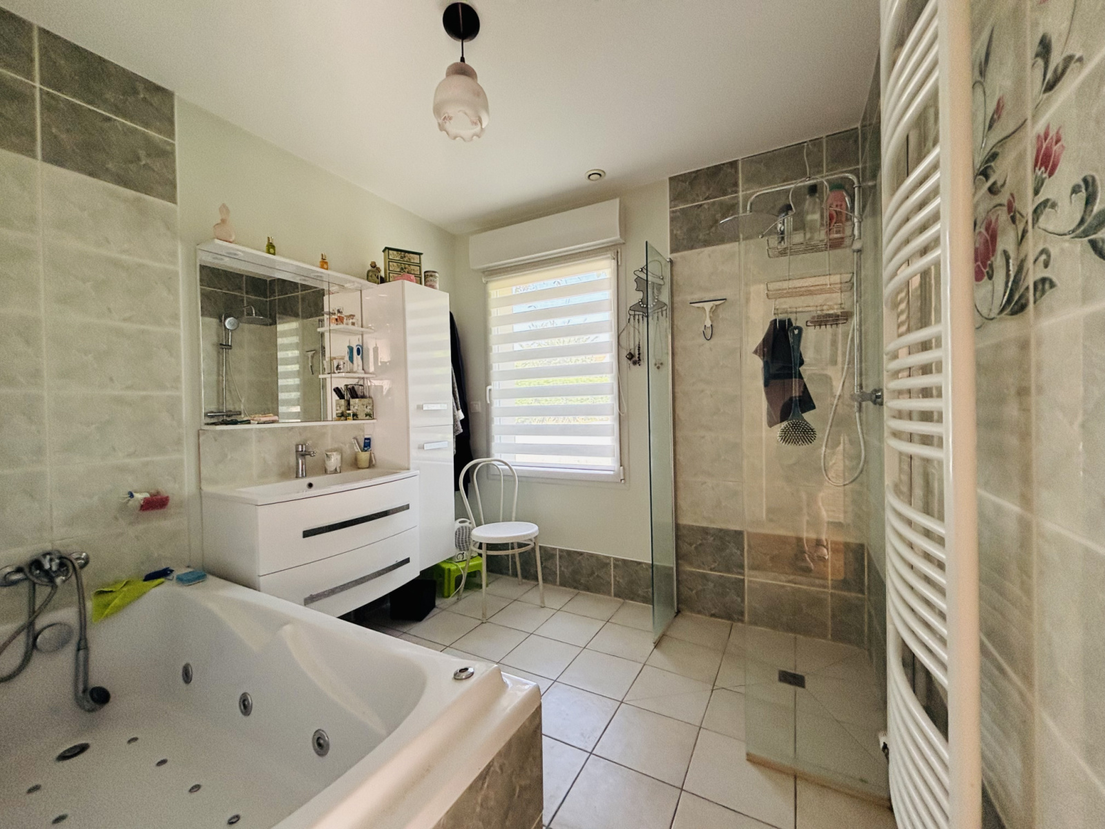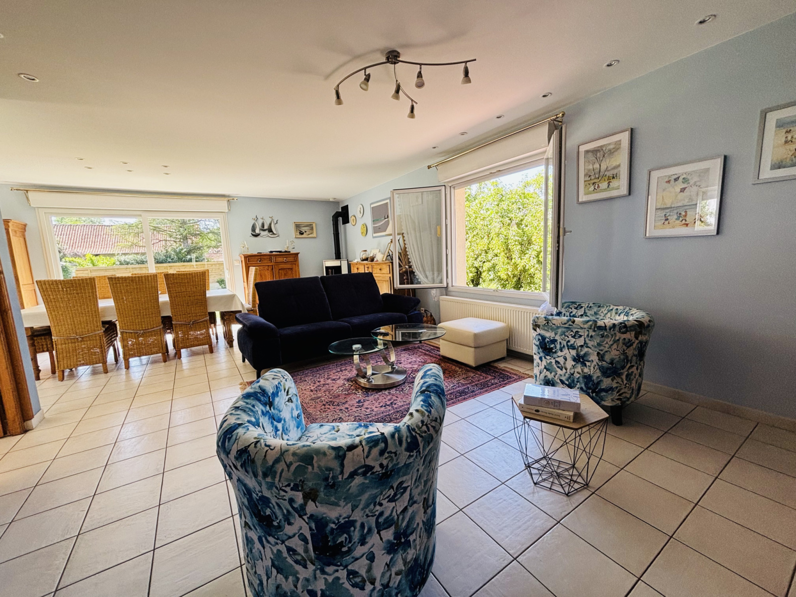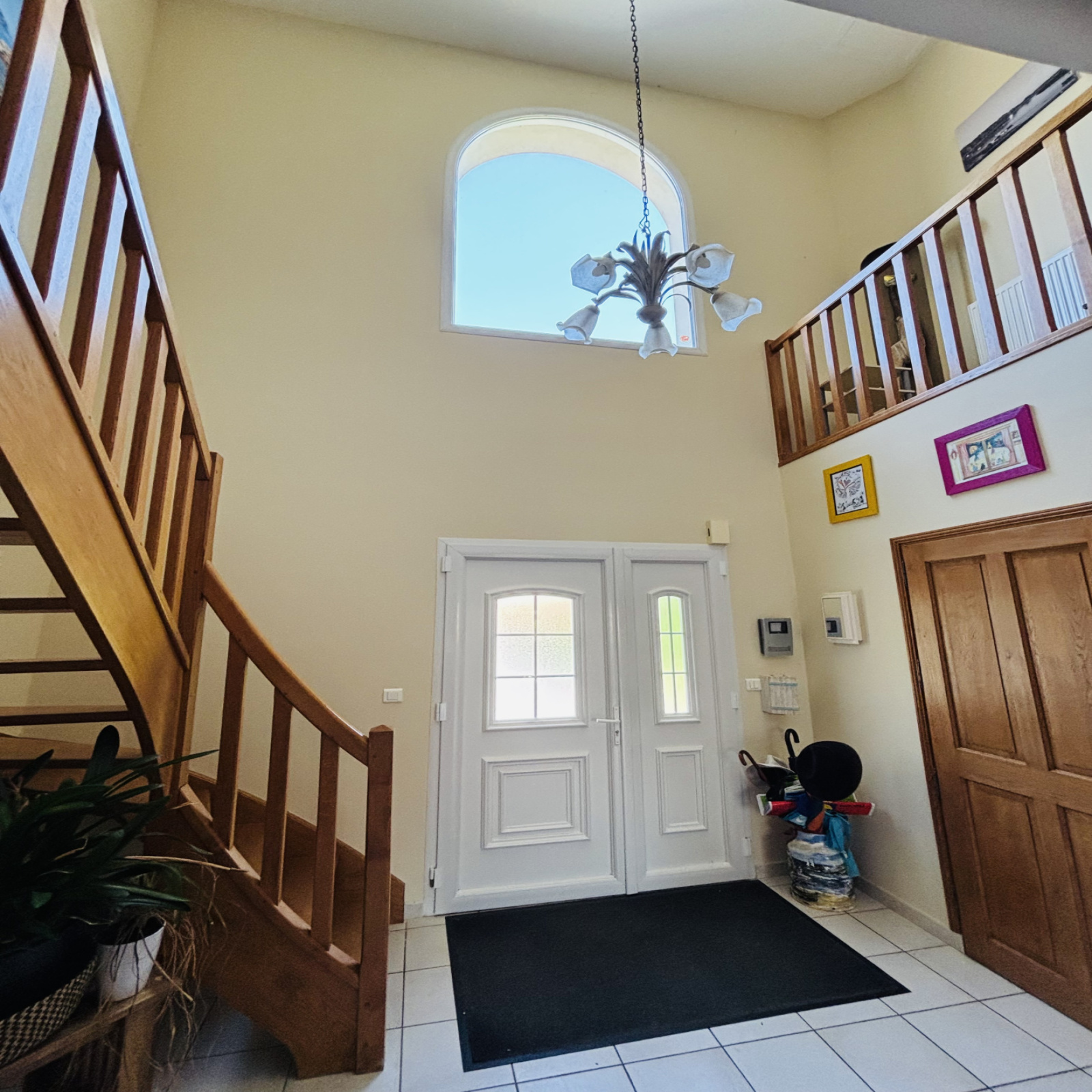 A vendre en exclusivité Agence la Demeure, Villa de 2003 en plein centre du village, se composant d'une entrée cathédrale, d'un vaste séjour baigné de lumière avec poêle à pellets, une suite parentale avec dressing et salle de bains, une cuisine séparée et equipée.