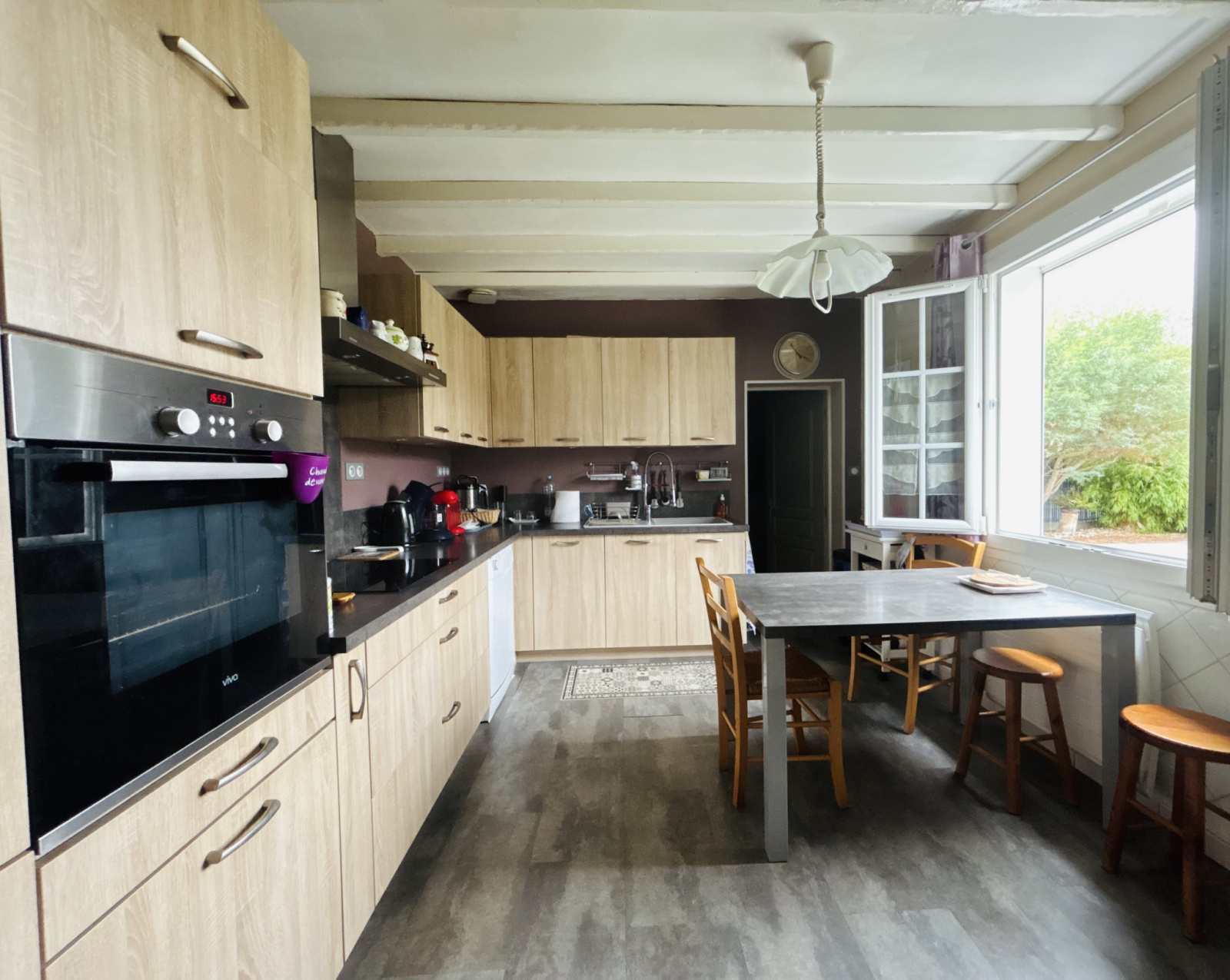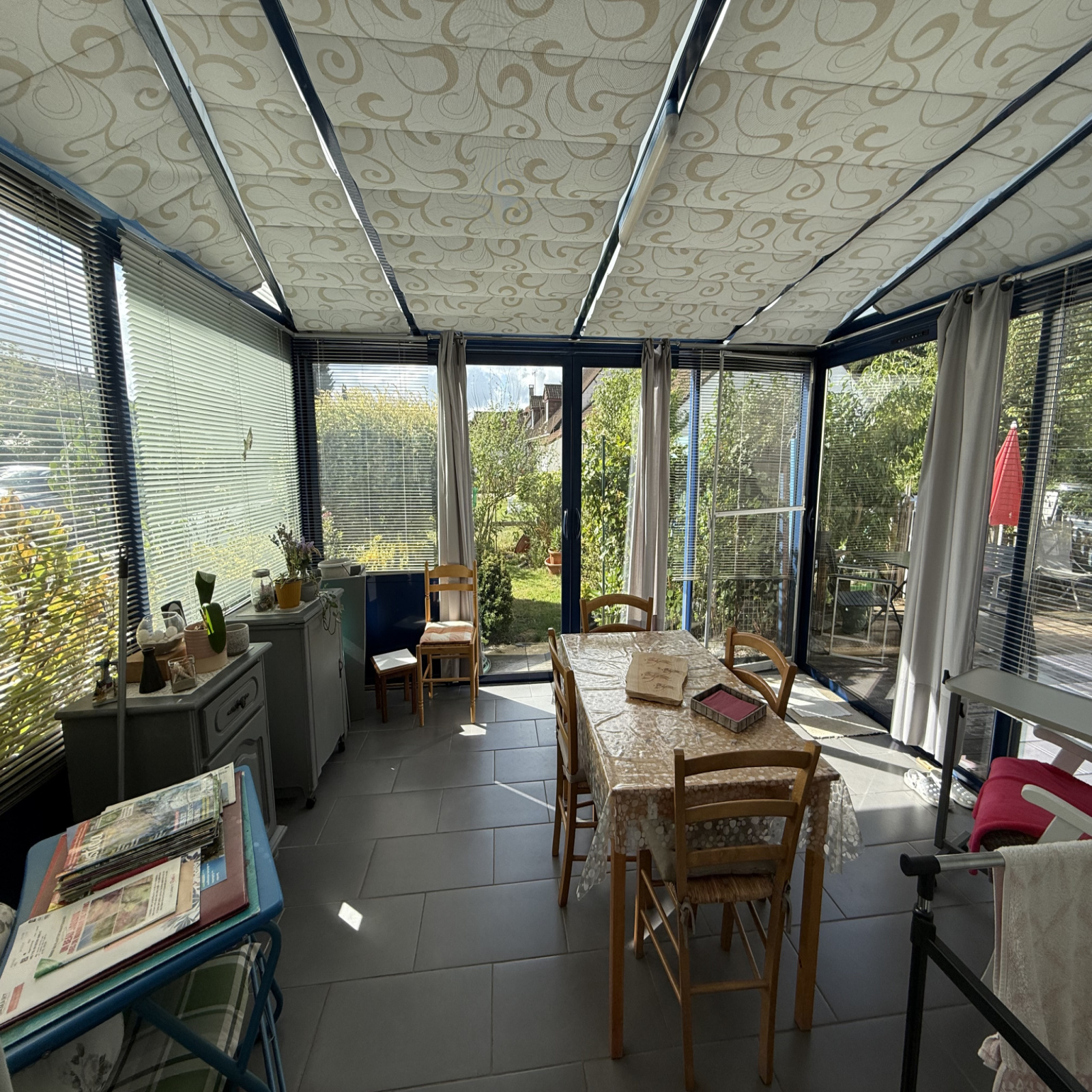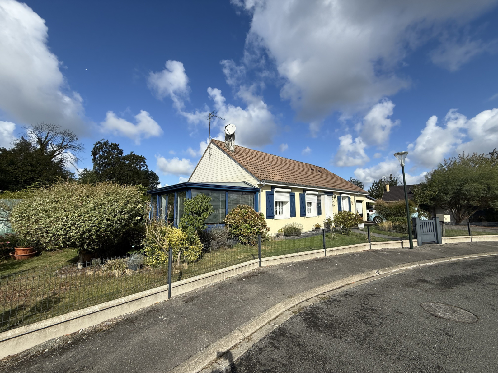 Jolie demeure de plain-pied en parfait état, se composant d'un hall d'entrée, d'un séjour de bonne taille exposé plein sud, prolongé par une véranda, une cuisine séparée et équipée avec un coin repas, trois chambres, une salle de bains et toilettes séparés.