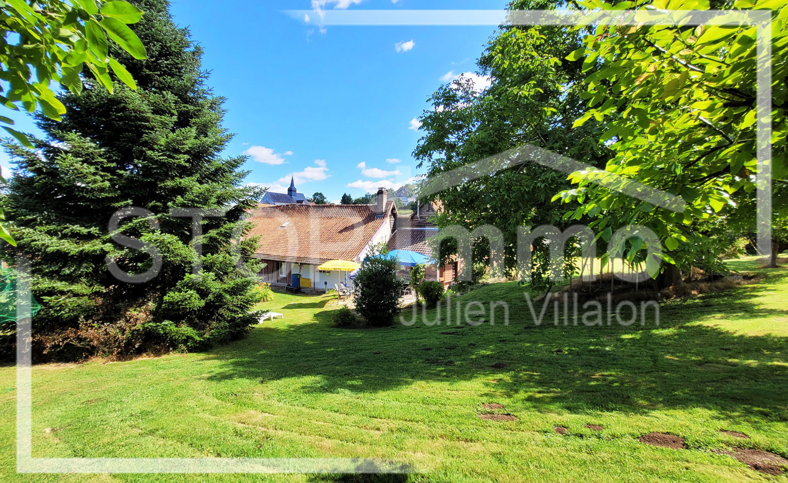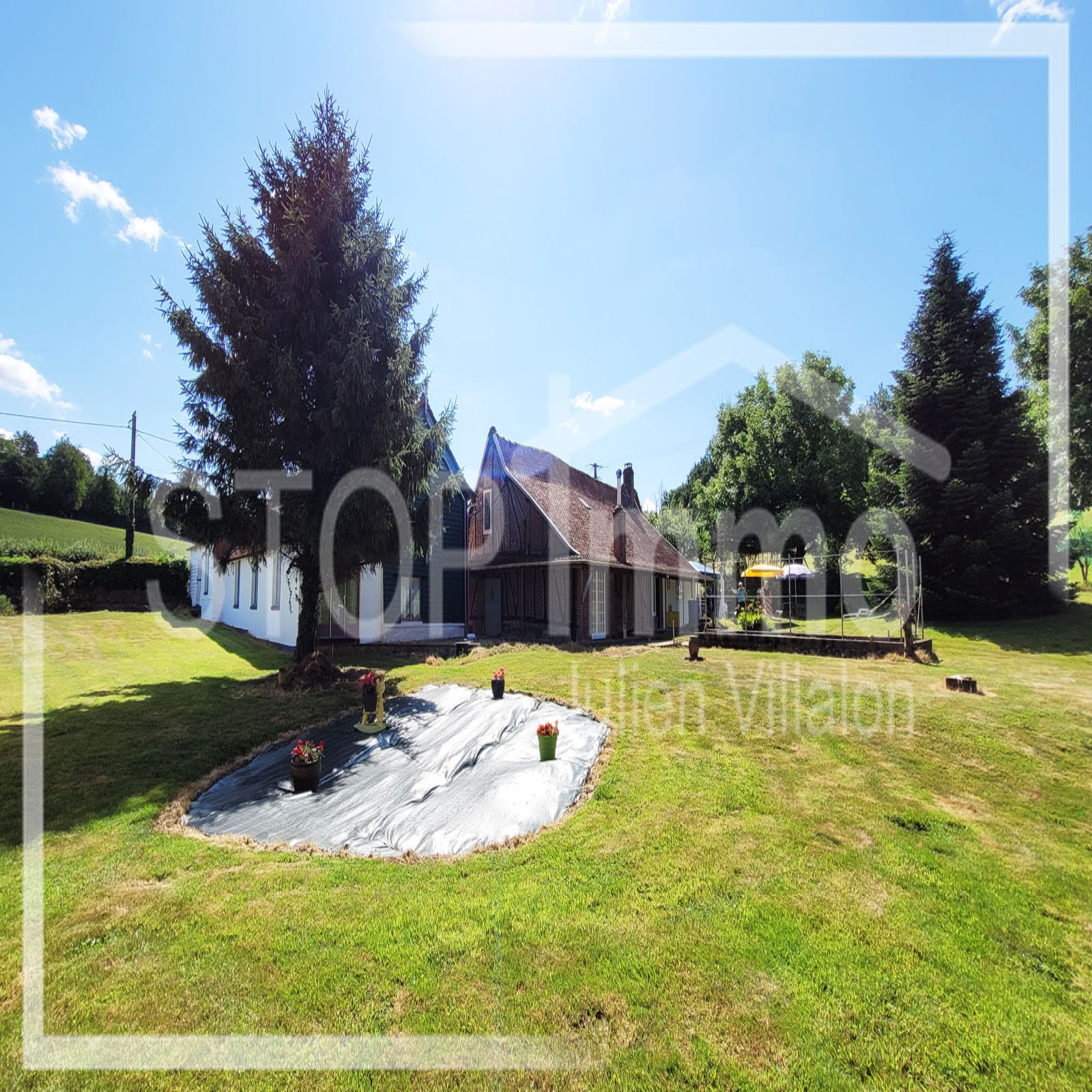 Sur les hauteurs du village, propriété constituée de deux habitations distinctes réparties autour de la cour carrée de ferme traditionnelle, dépendances, garage et grange, au coeur de plus de 8600 m² de terrain (jardin et pâtures).
