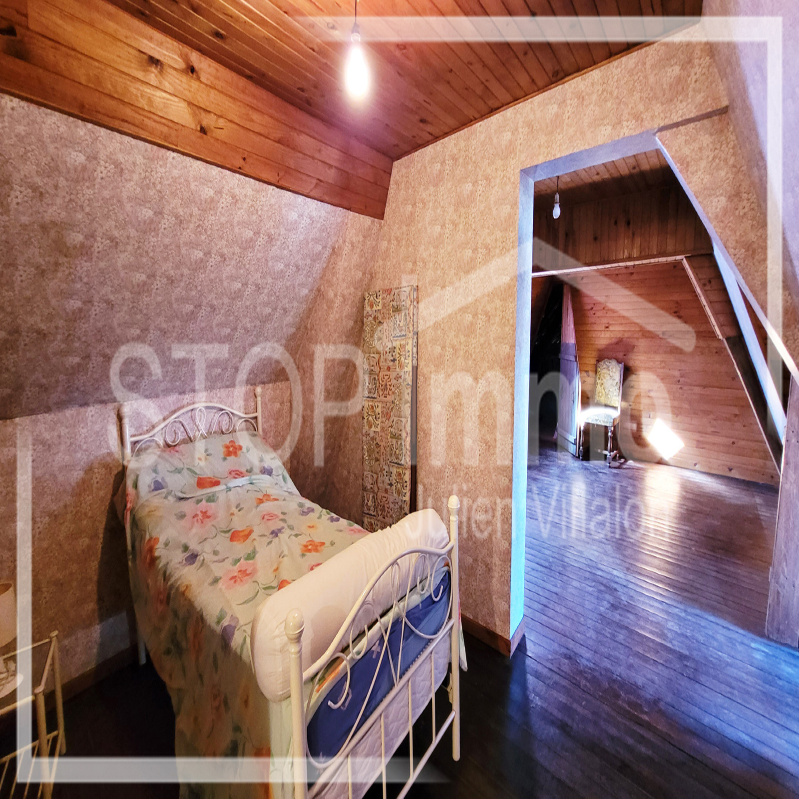 A l'étage, 2 chambres de part et d'autre de l'habitation, avec greniers potentiellement aménageables.