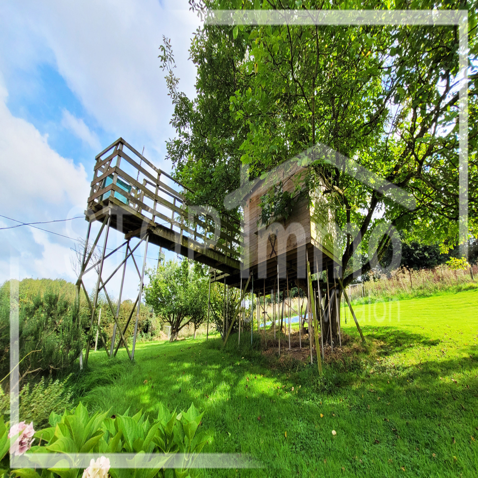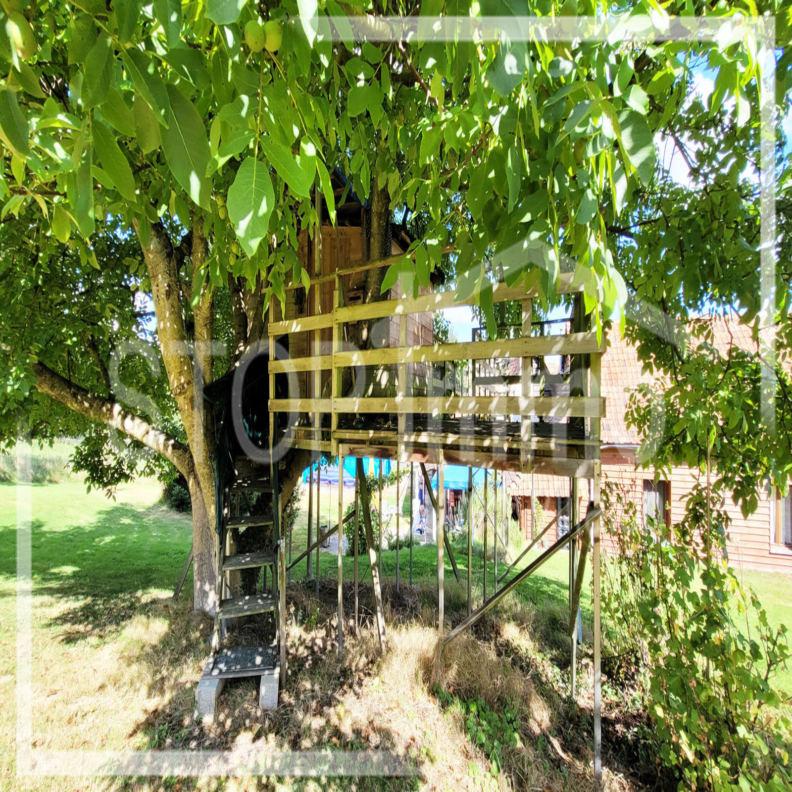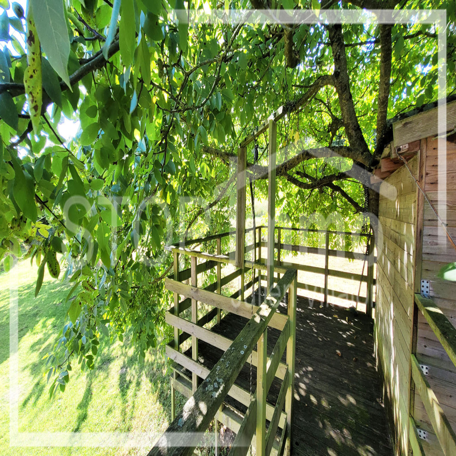 Cabane de rêve réalisée artisanalement dans l'arbre principal de la propriété, refuge idéal de jeux pour les enfants!