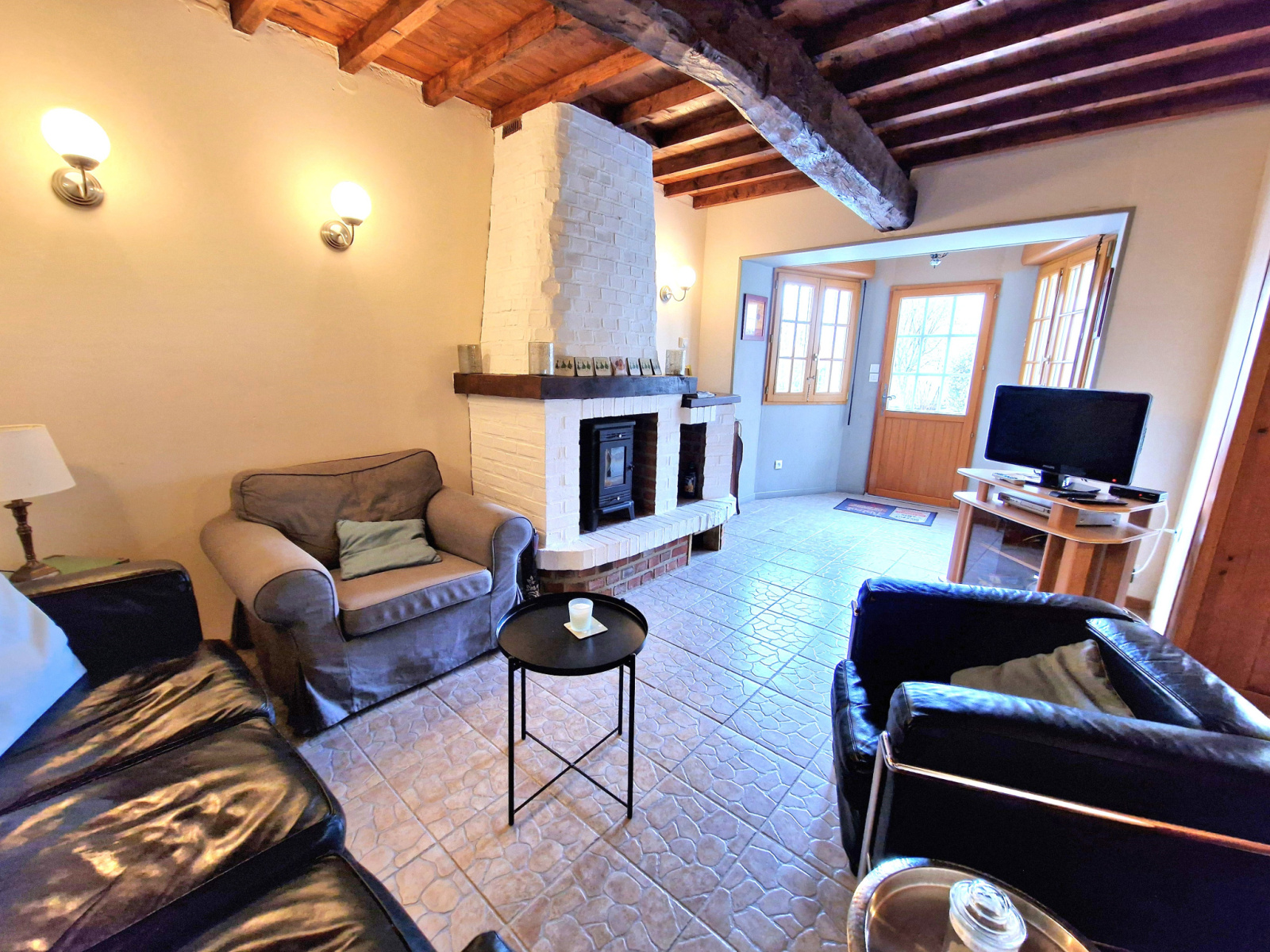 La propriété comprend deux habitations actuellement exploitées en gîtes. La maison principale de 118m², de plain-pied, propose une belle pièce de vie lumineuse d’environ 30 m², une vaste cuisine équipée de plus de 20 m², trois chambres, une salle de bains et une buanderie.