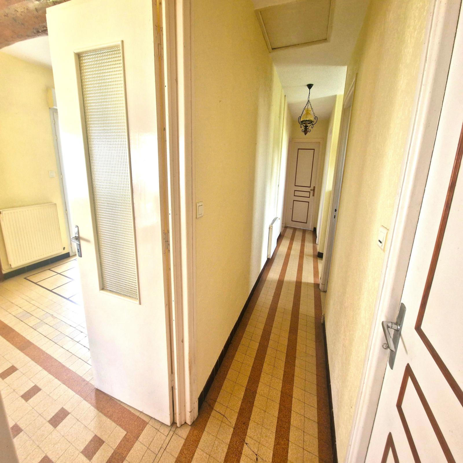 Elle se compose: D'une cuisine ouverte sur salon/séjour de 30 m² - Une véranda (5 m²) - Un couloir desservant: 3 chambres (9.50 - 9.60 et 14 m²) - Une salle d'eau et un WC indépendant.