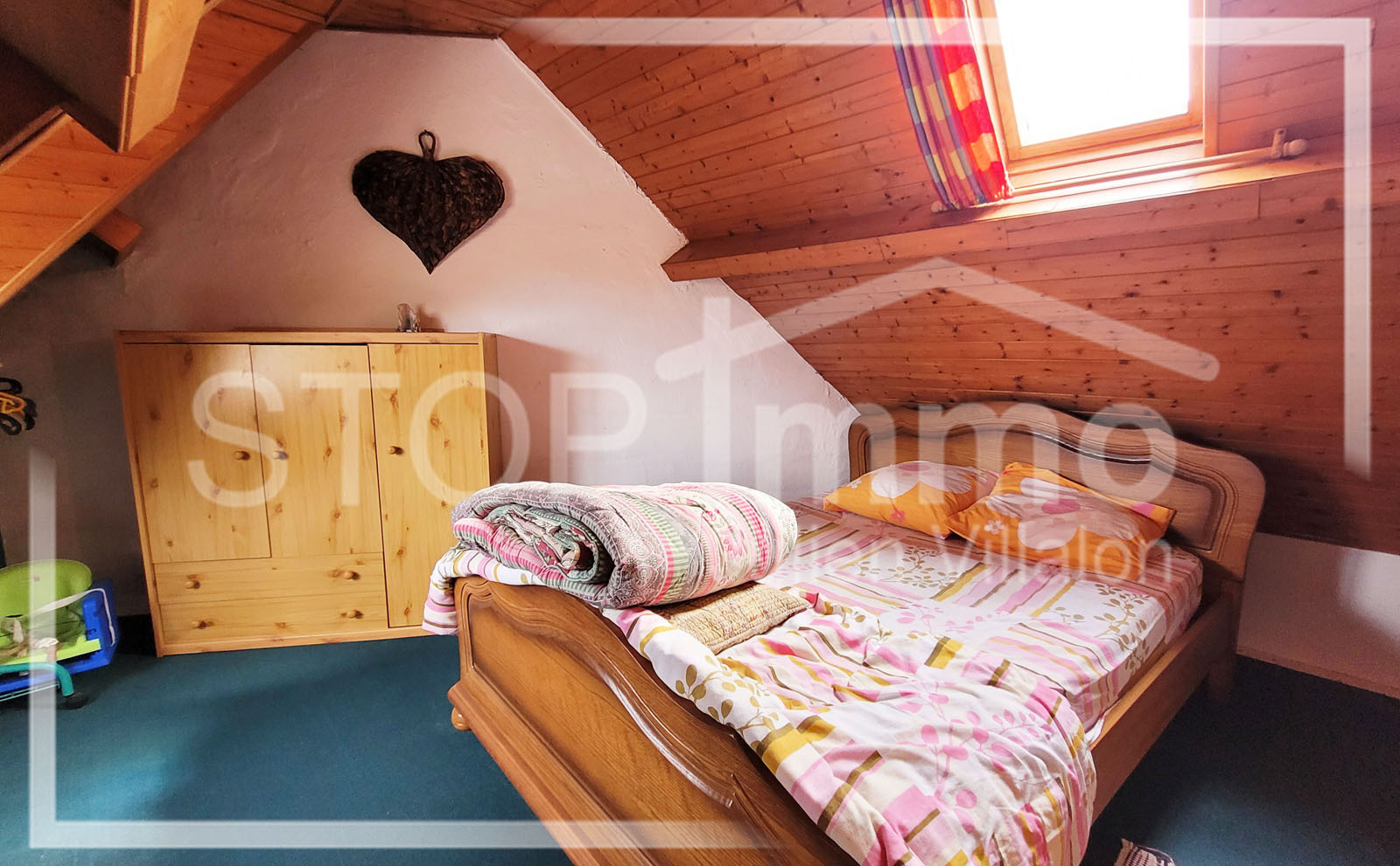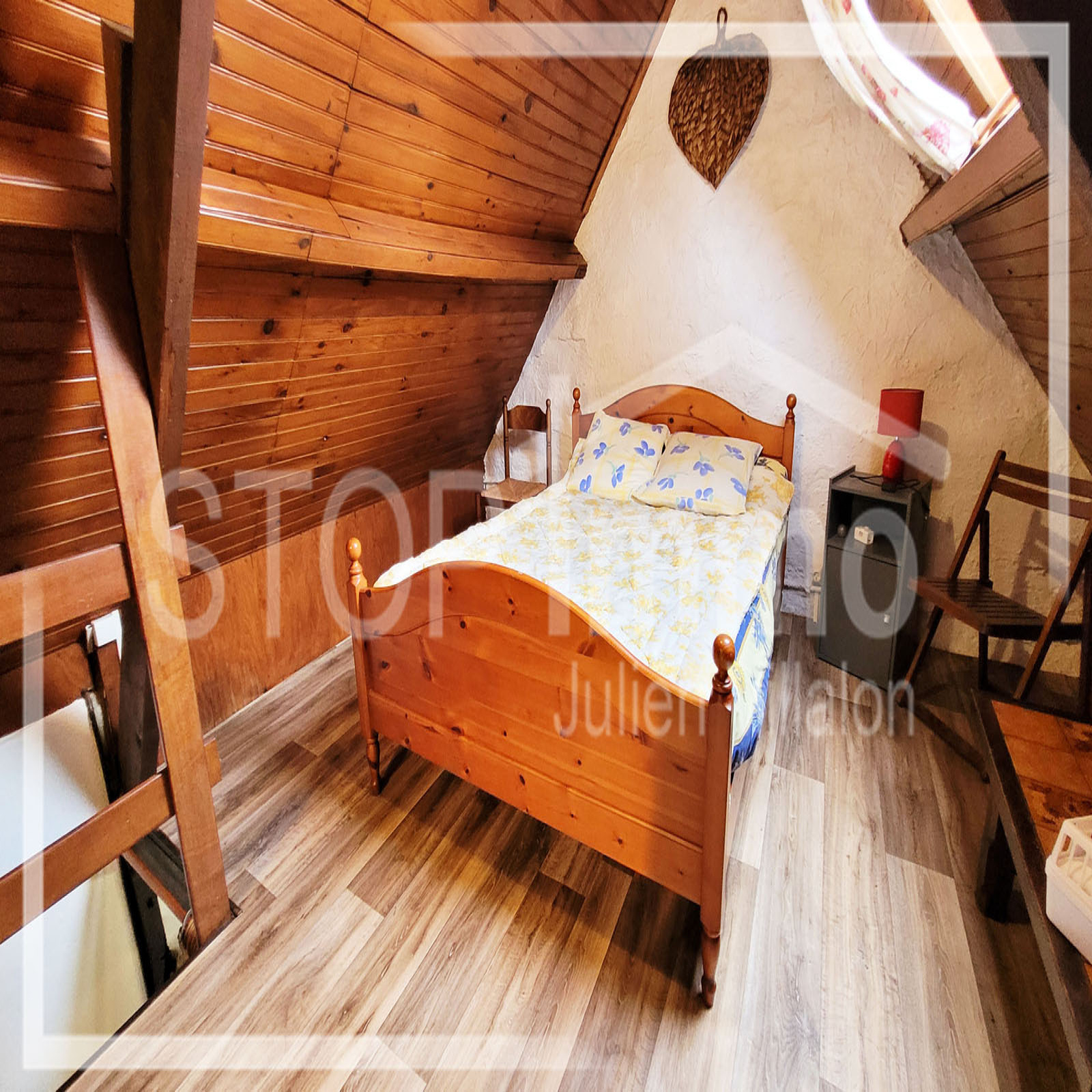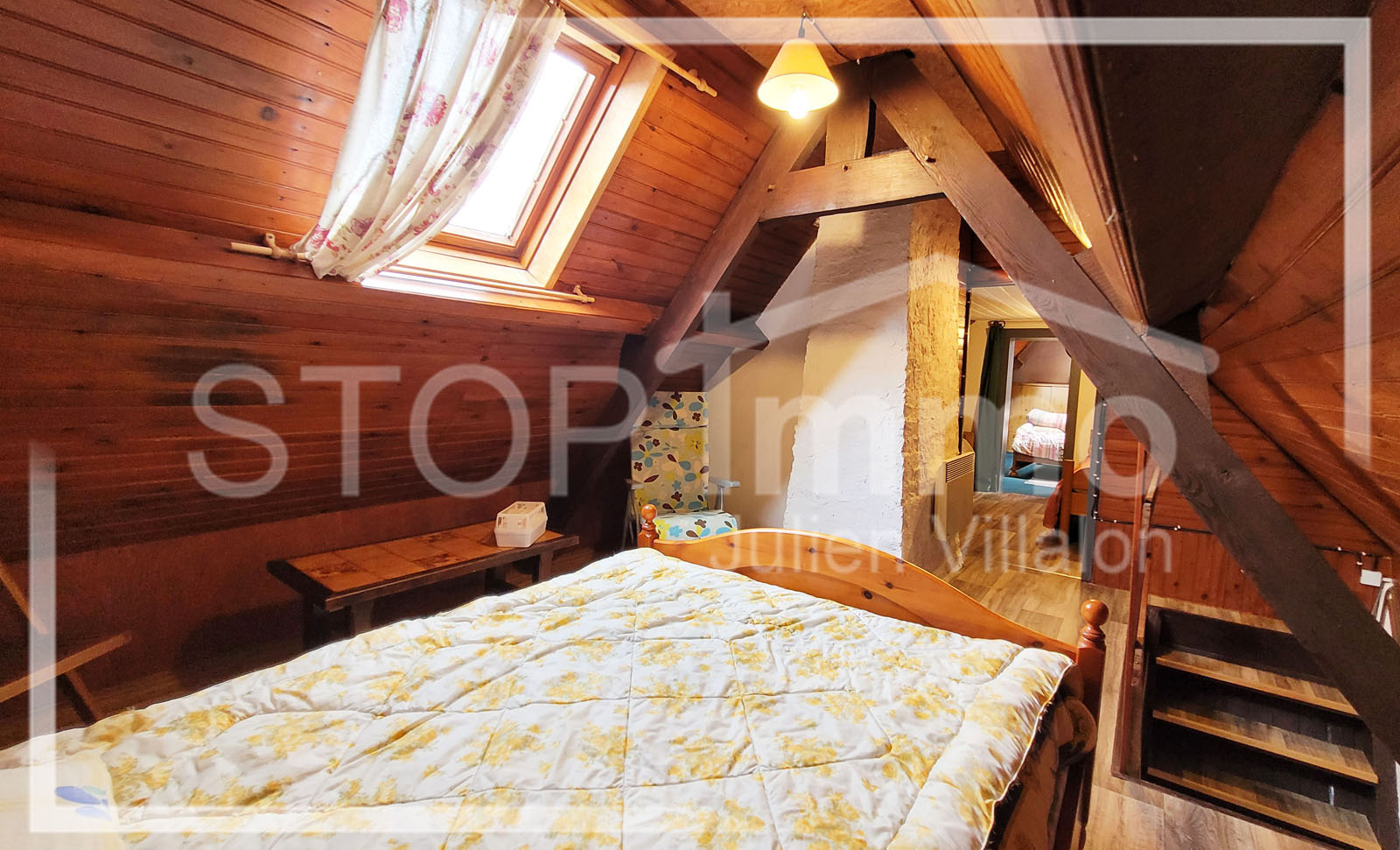 A l'étage, pièce palière accueillant plusieurs espaces de couchage, une chambre.