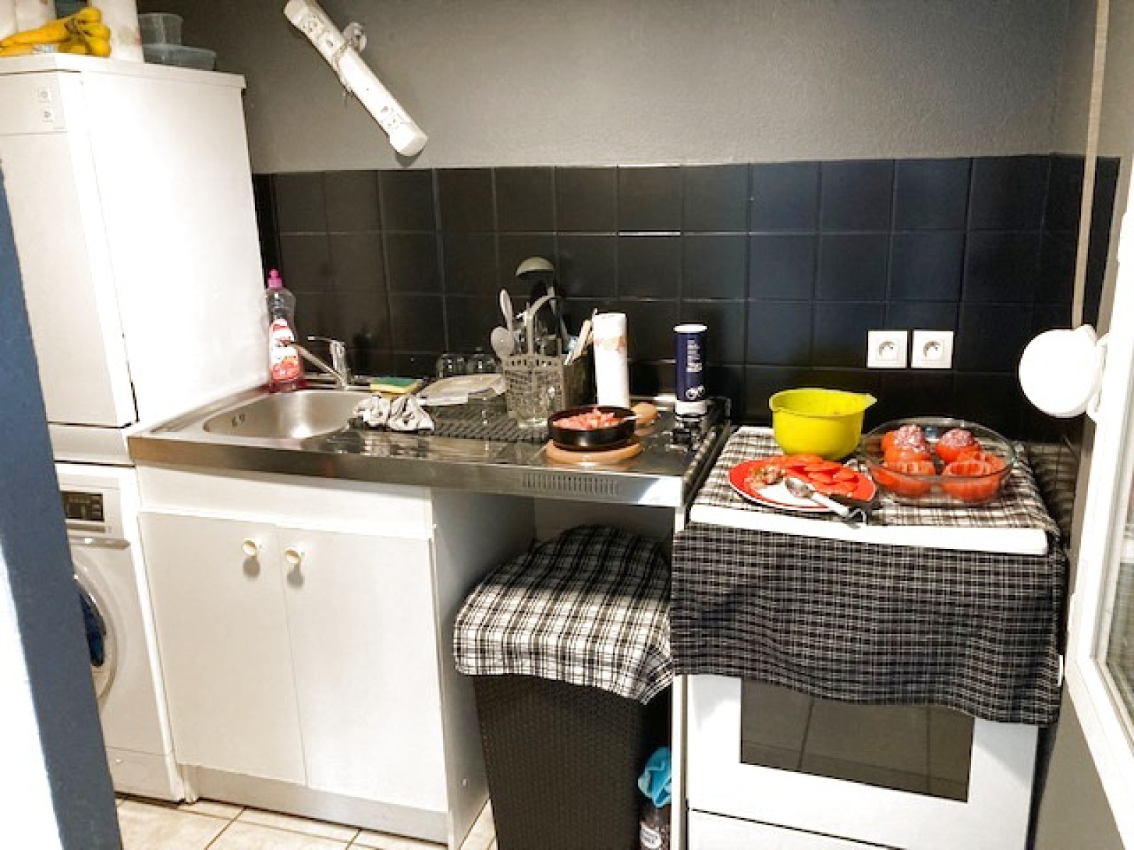 Appartement T2 au 1er étage d'une résidence sécurisée entre la ville et la plage proche tous commerces, comprenant : Un hall d'entrée, un séjour/salon donnant sur un balcon orienté Est, une chambre, une cuisine, un cellier, une salle de bain, un wc.