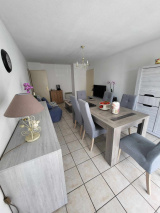 Appartement T2 proche commerces et toutes commoditées au 1er étage d'une résidence sécurisée, entre la vile et la plage comprenant : une entrée desservant un séjour/salon donnant sur un balcon plein sud, une cuisine indépendante, une chambre avec placards, une salle de bains, un wc.