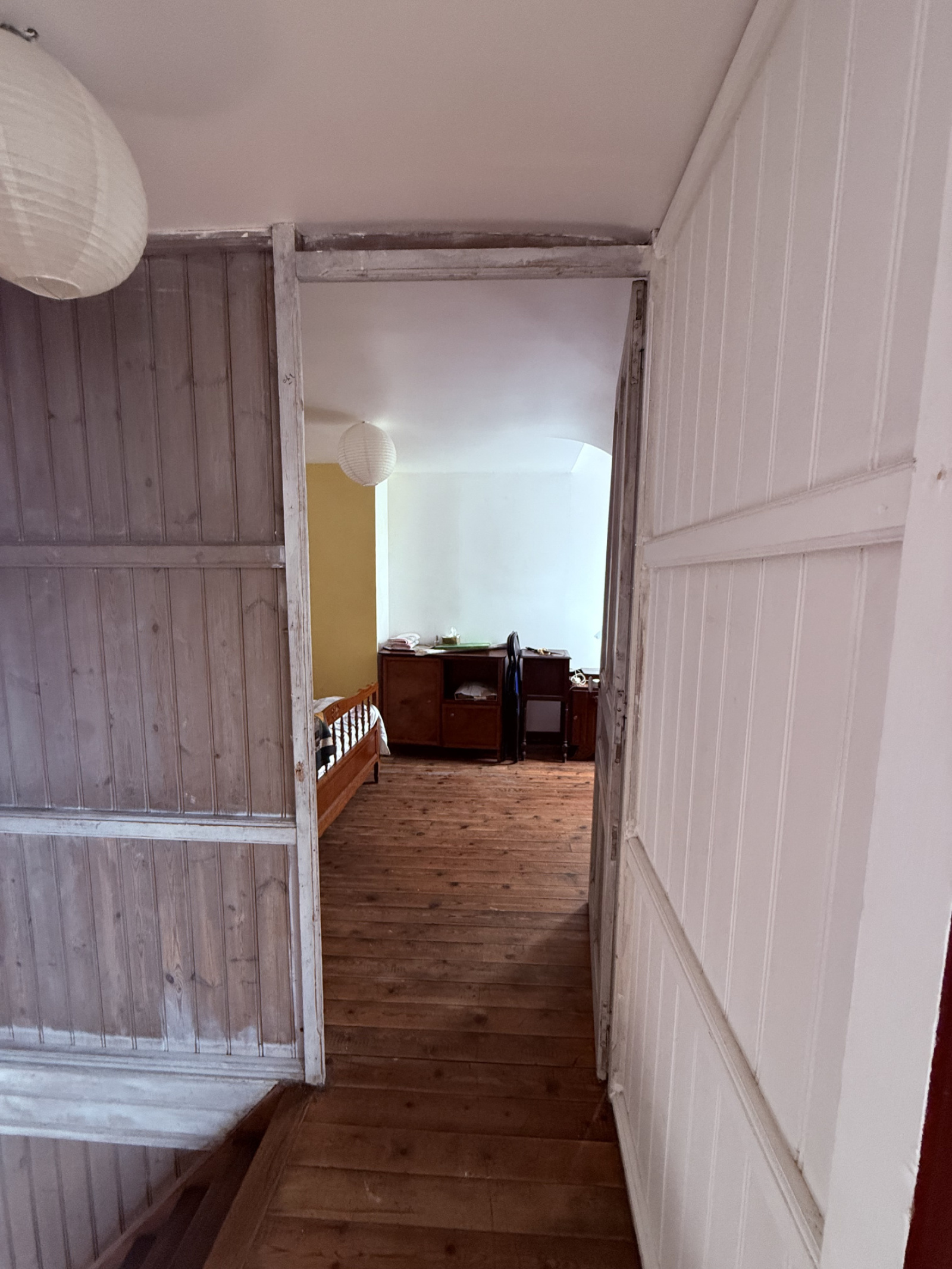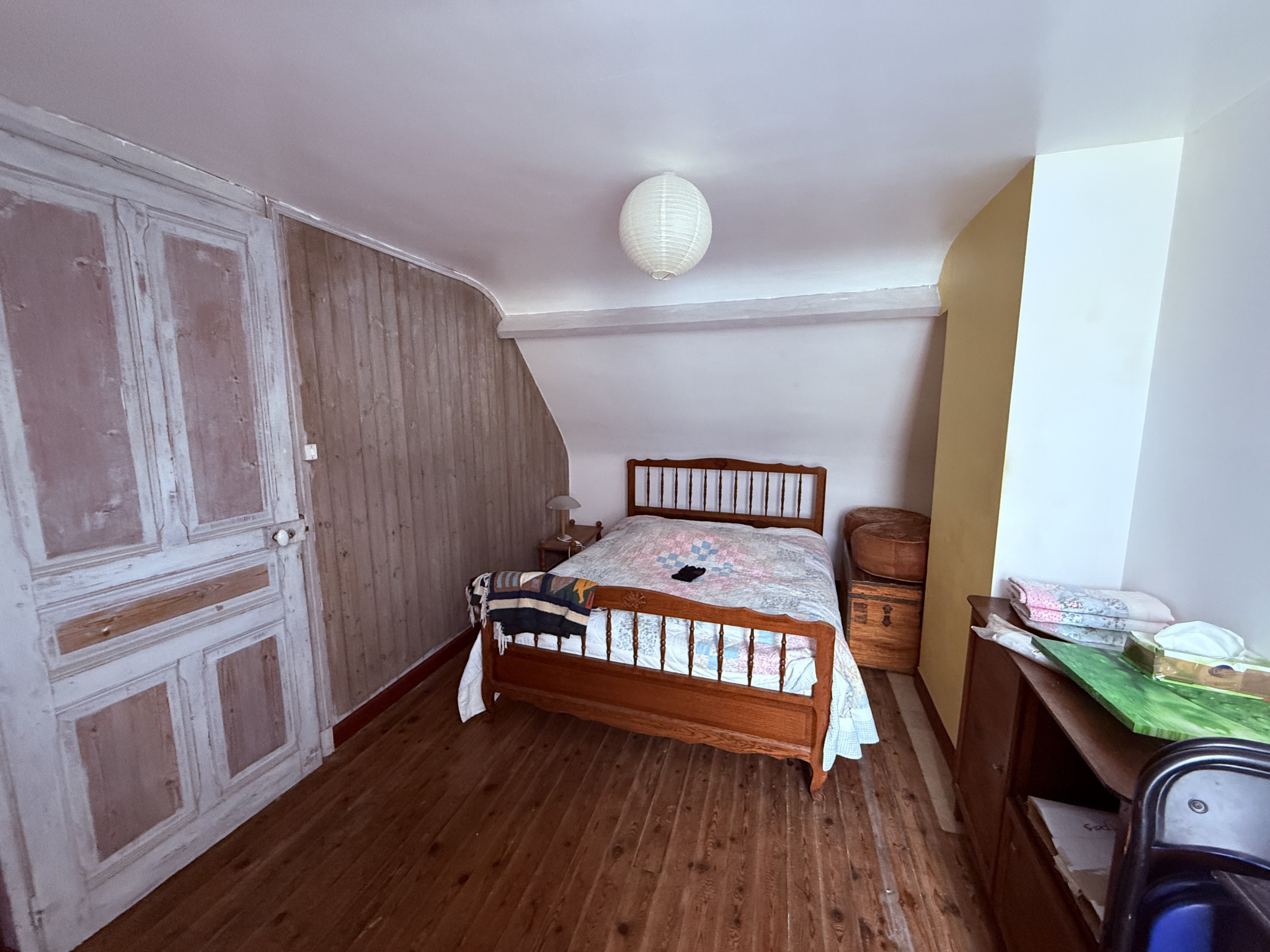 Au premier étage, un grand palier bureau, une chambre, une salle de bains, un toilette séparé. Au dernier étage, deux chambres. Un rafraichissement est à prévoir.