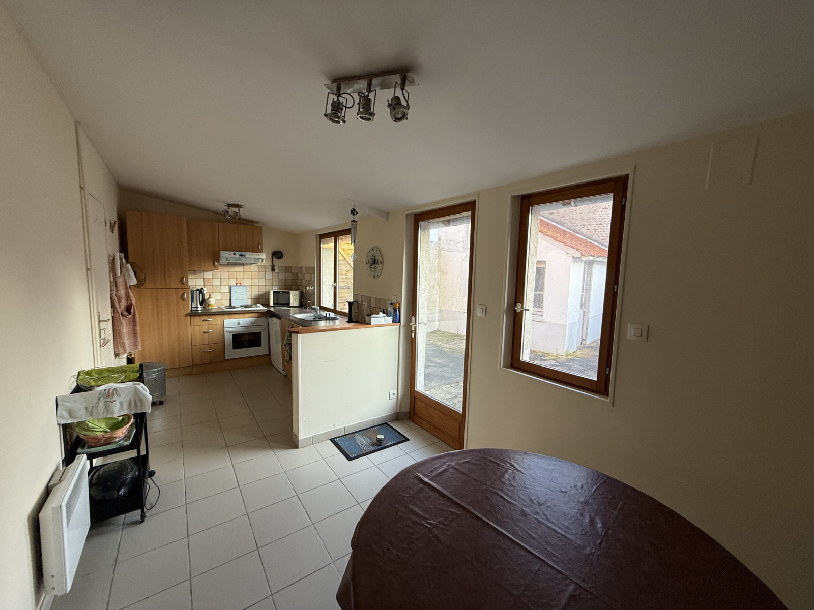 Cette maison pleine de charme se compose d'un séjour avec carrelage ancien, d'une cusine séparée et aménagée donnant sur une grande cour bénificiant d'un deuxième accès et d'une dépendance. Grand garage attenant à la maison.