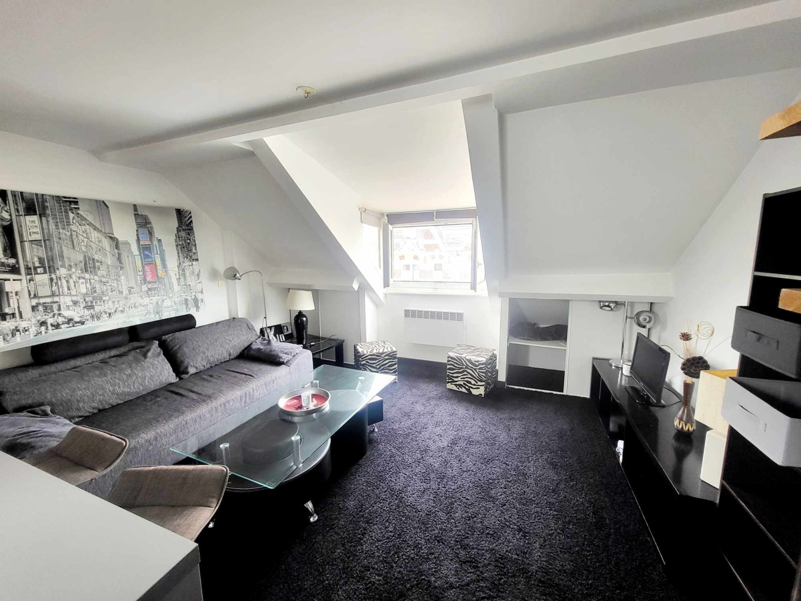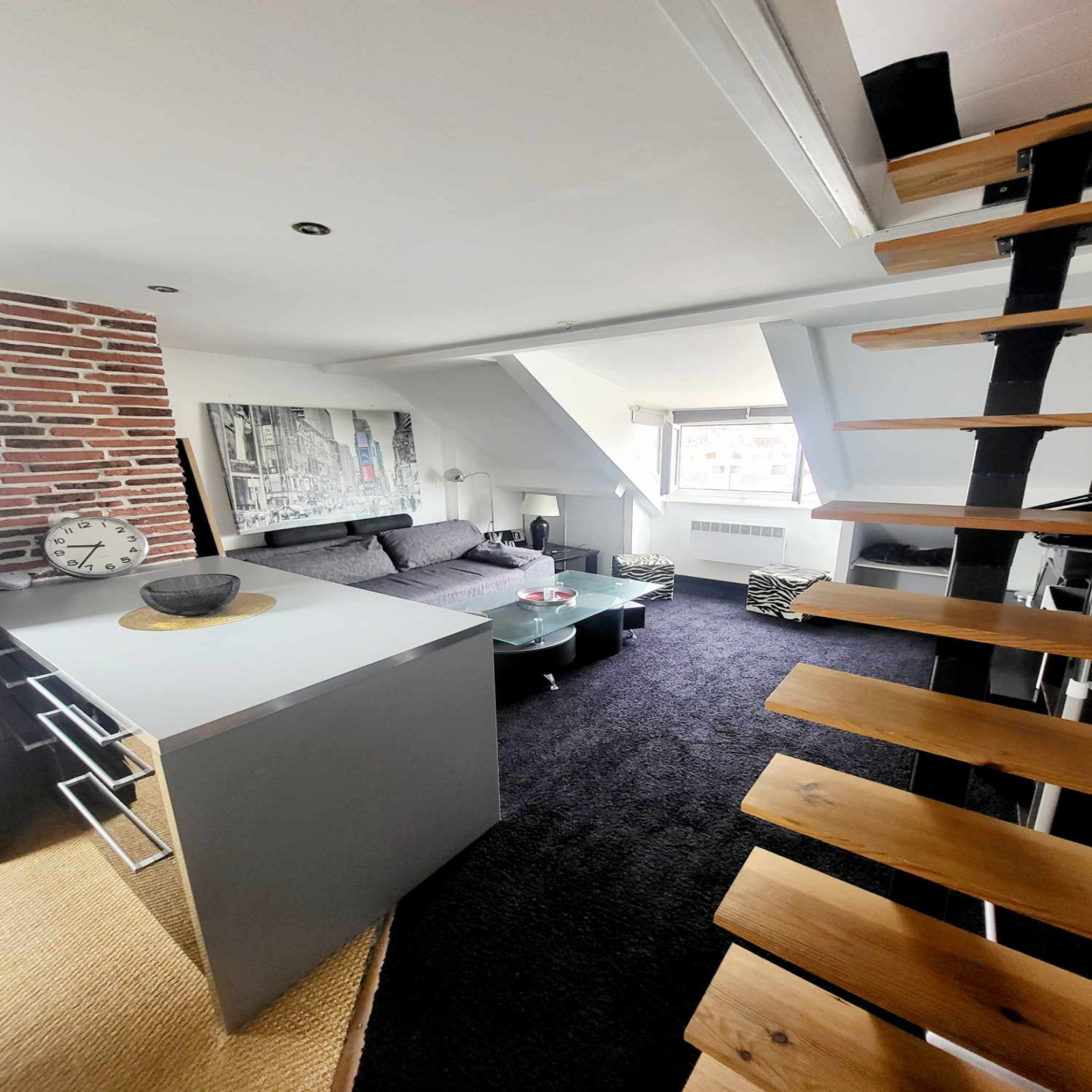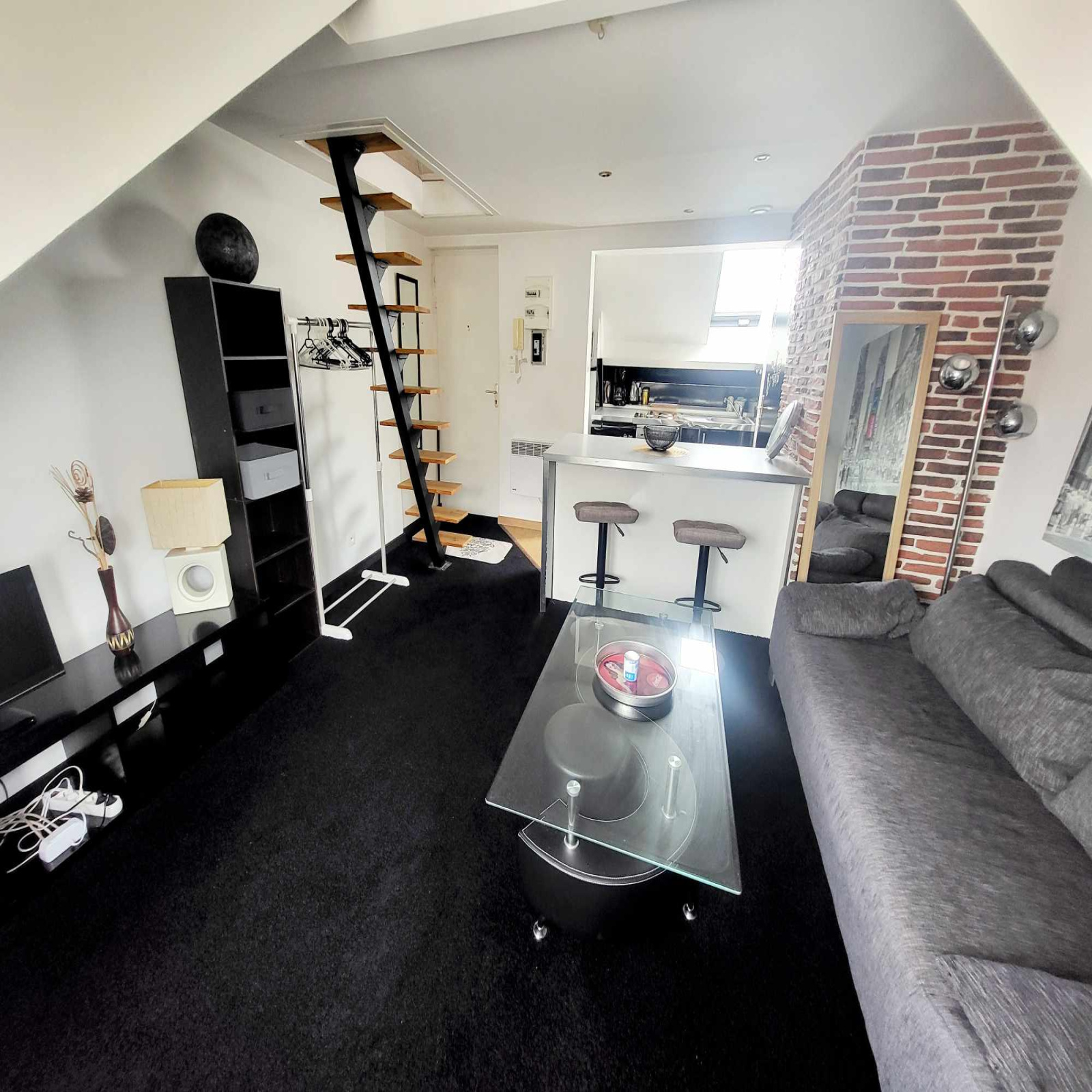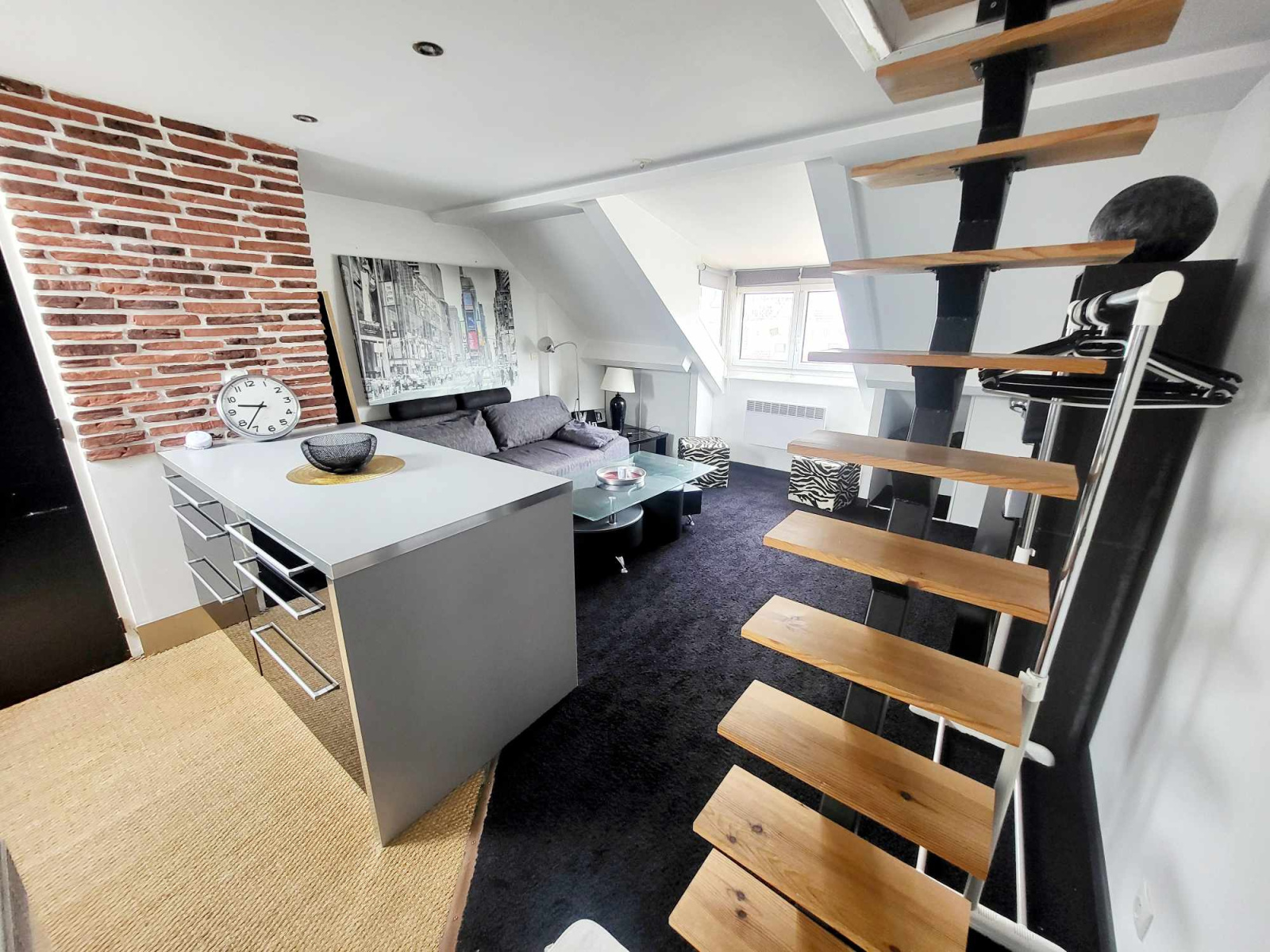 Magnifique studio au 3 éme et dernier étage à deux pas de la plage et du centre ville comprenant : une pièce à vivre avec coin cuisine aménagée et équipée, une salle de douche avec wc, une mezzanine.