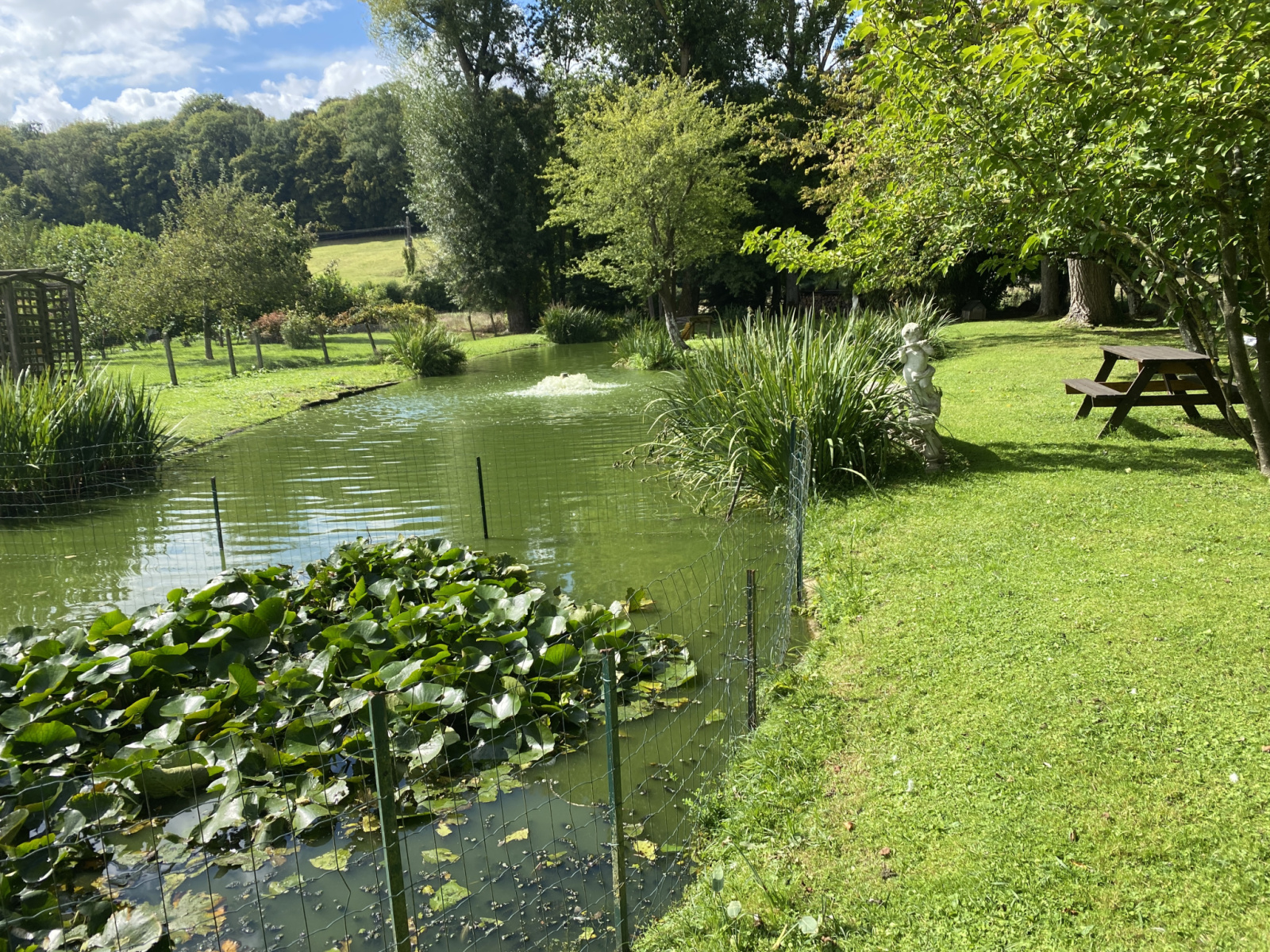Mais également une terrasse avec vue sur un étang, un garage, des dépendances, un très beau jardin arboré, le calme, la verdure..., le tout sur environ 2000m²