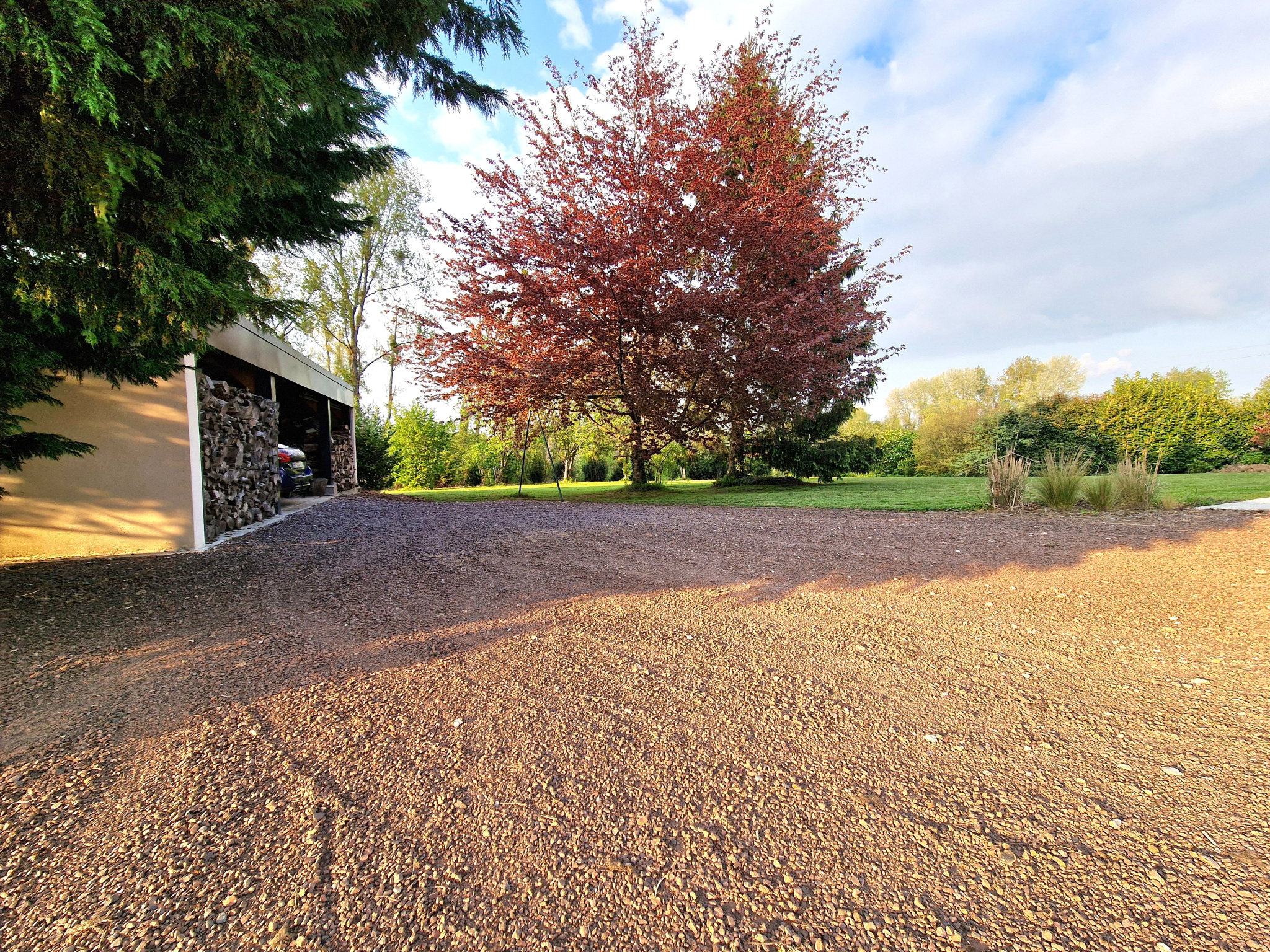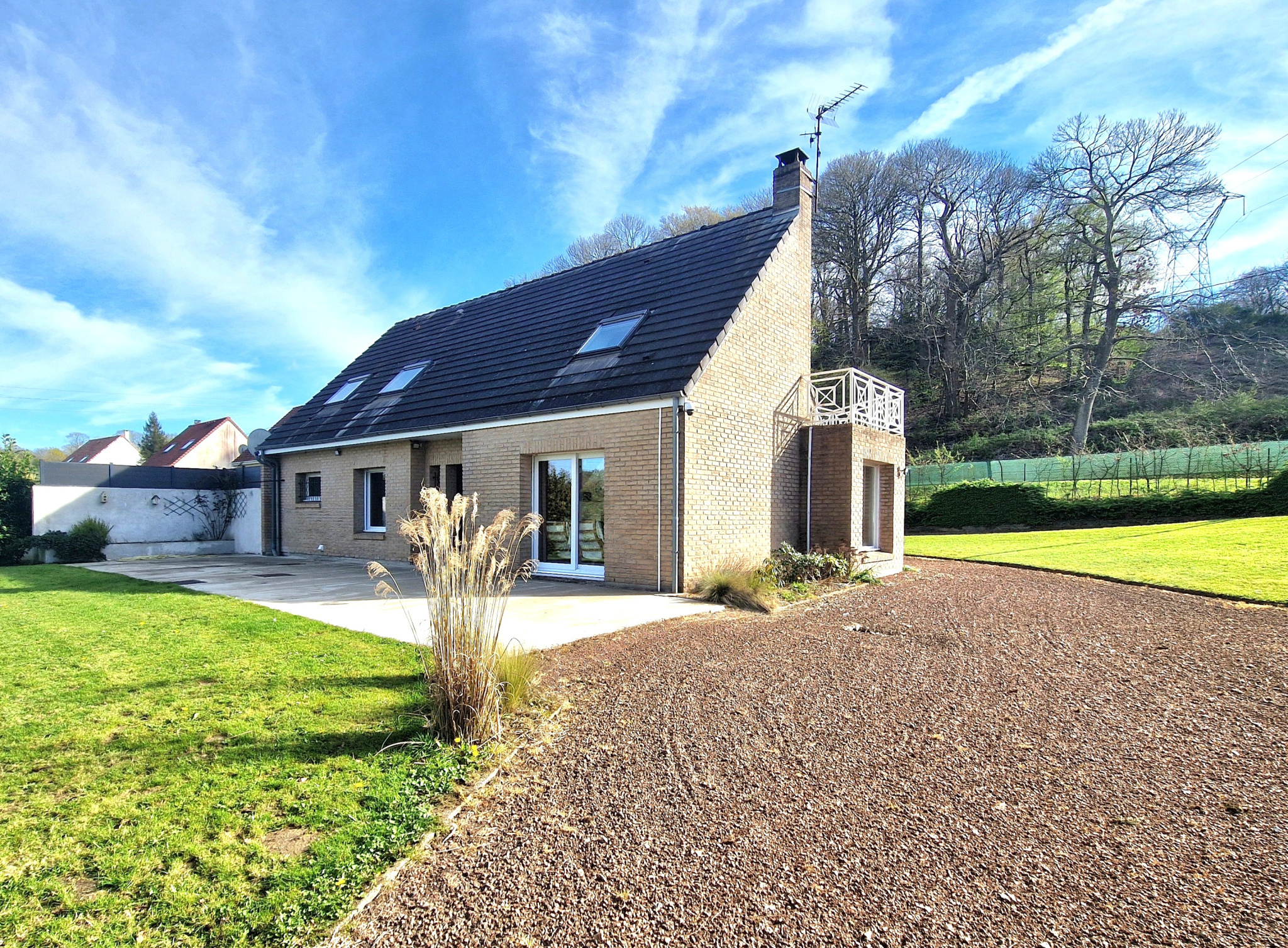 Le terrain, clos et sécurisé par un portail, offre un cadre agréable avec une vue dégagée.