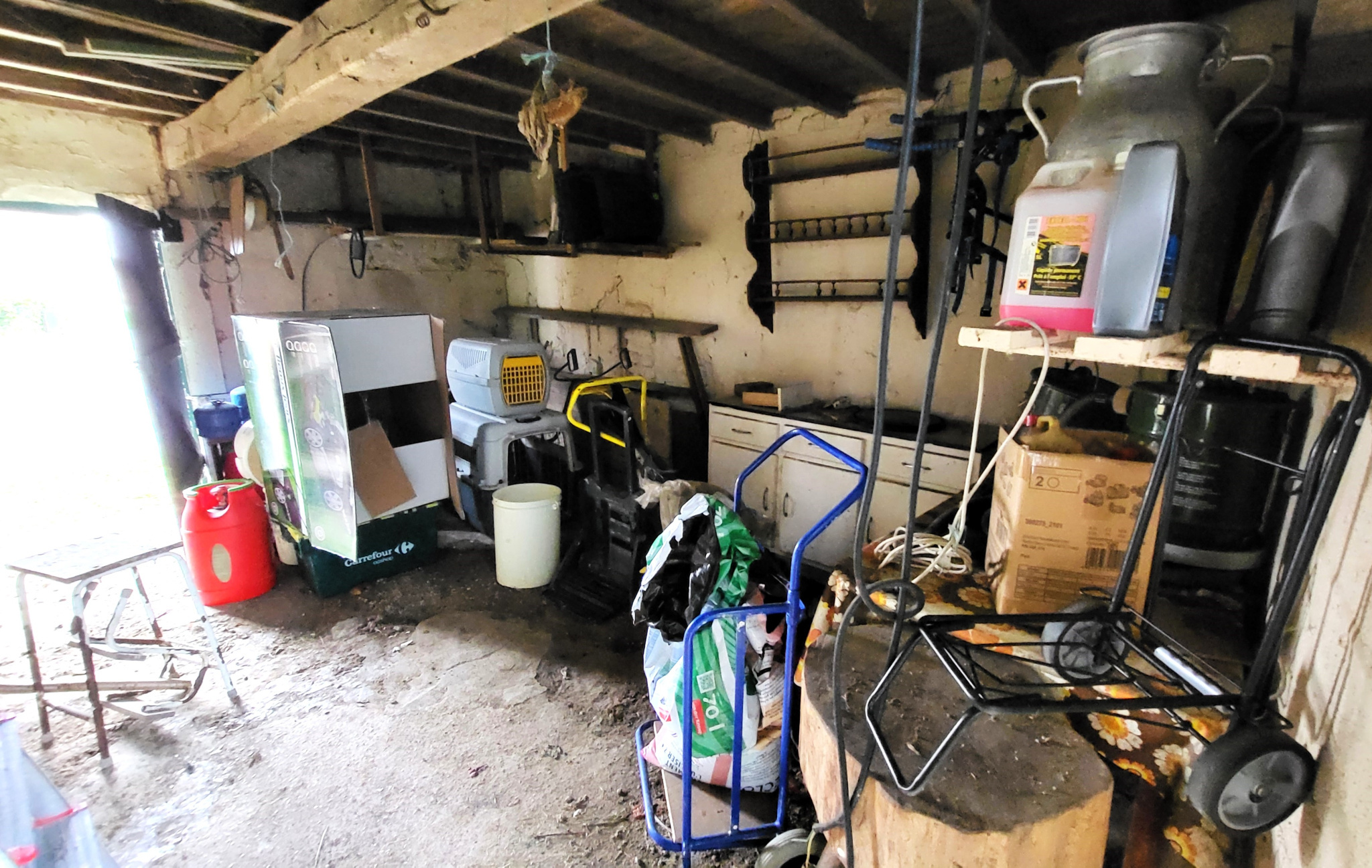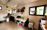 Arrière cuisine avec buanderie, ouvrant sur l'extérieur.