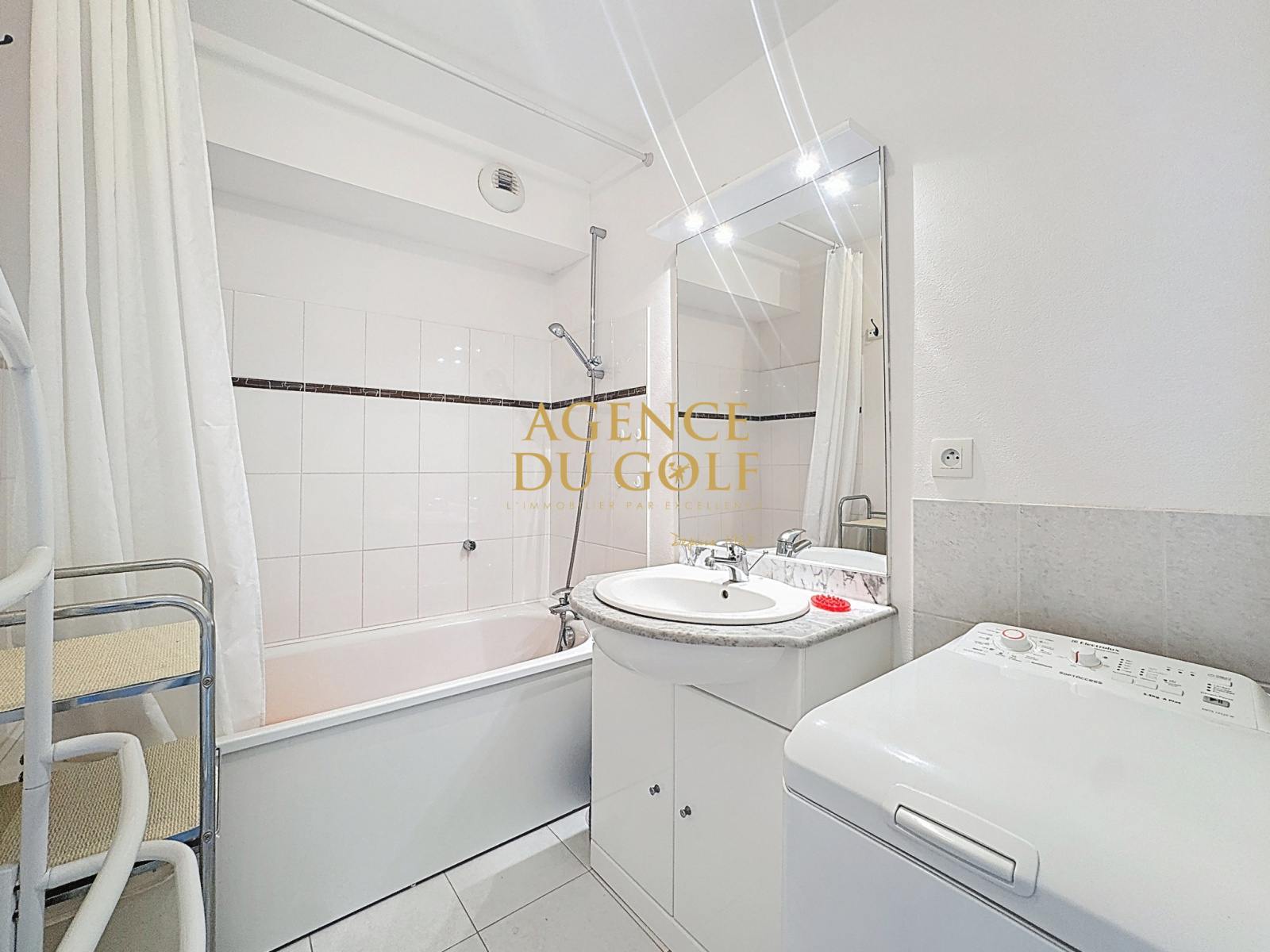 - Salle de bain avec baignoire et arrivée d’eau pour machine à laver