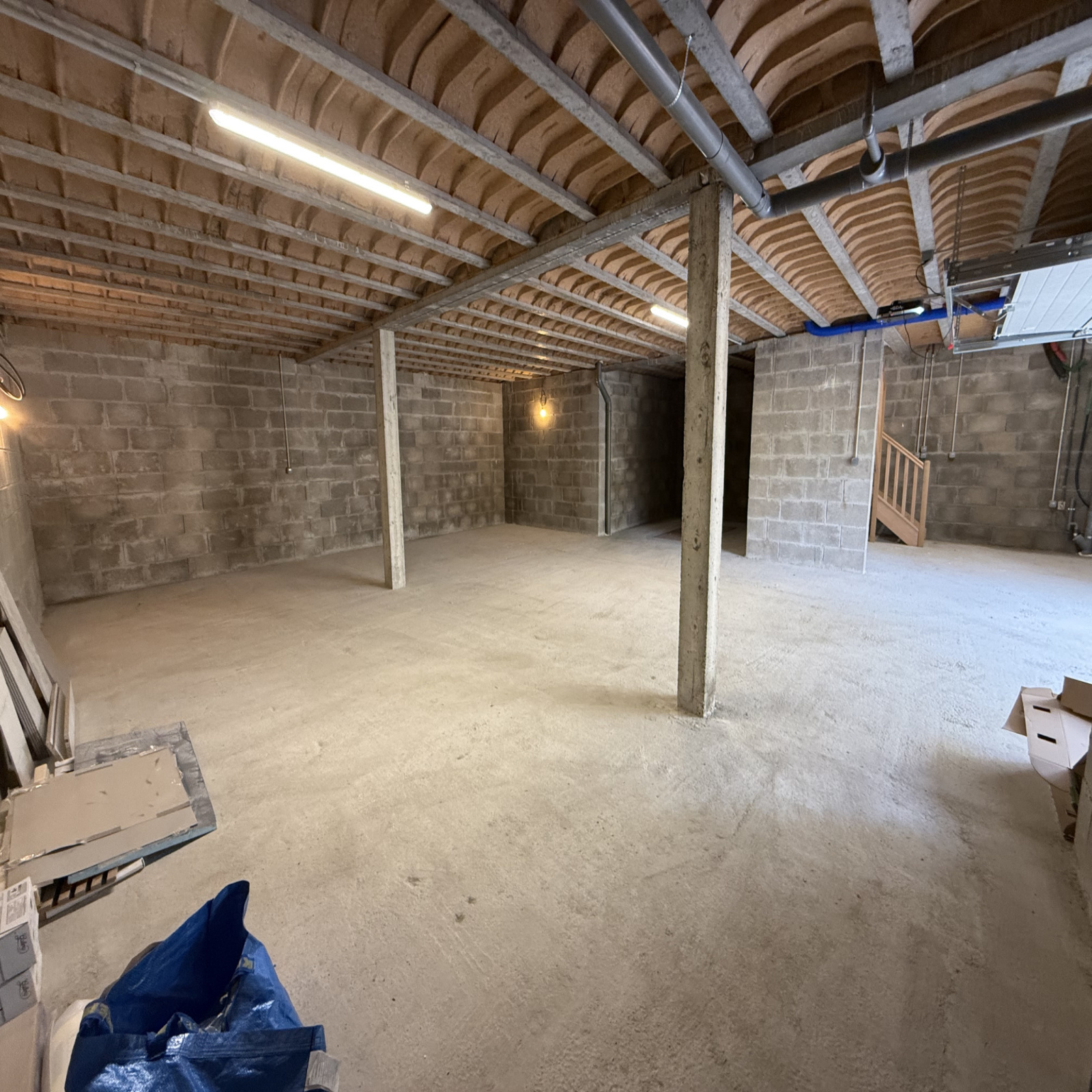Immense sous-sol complet de 110 m² avec porte électrique.