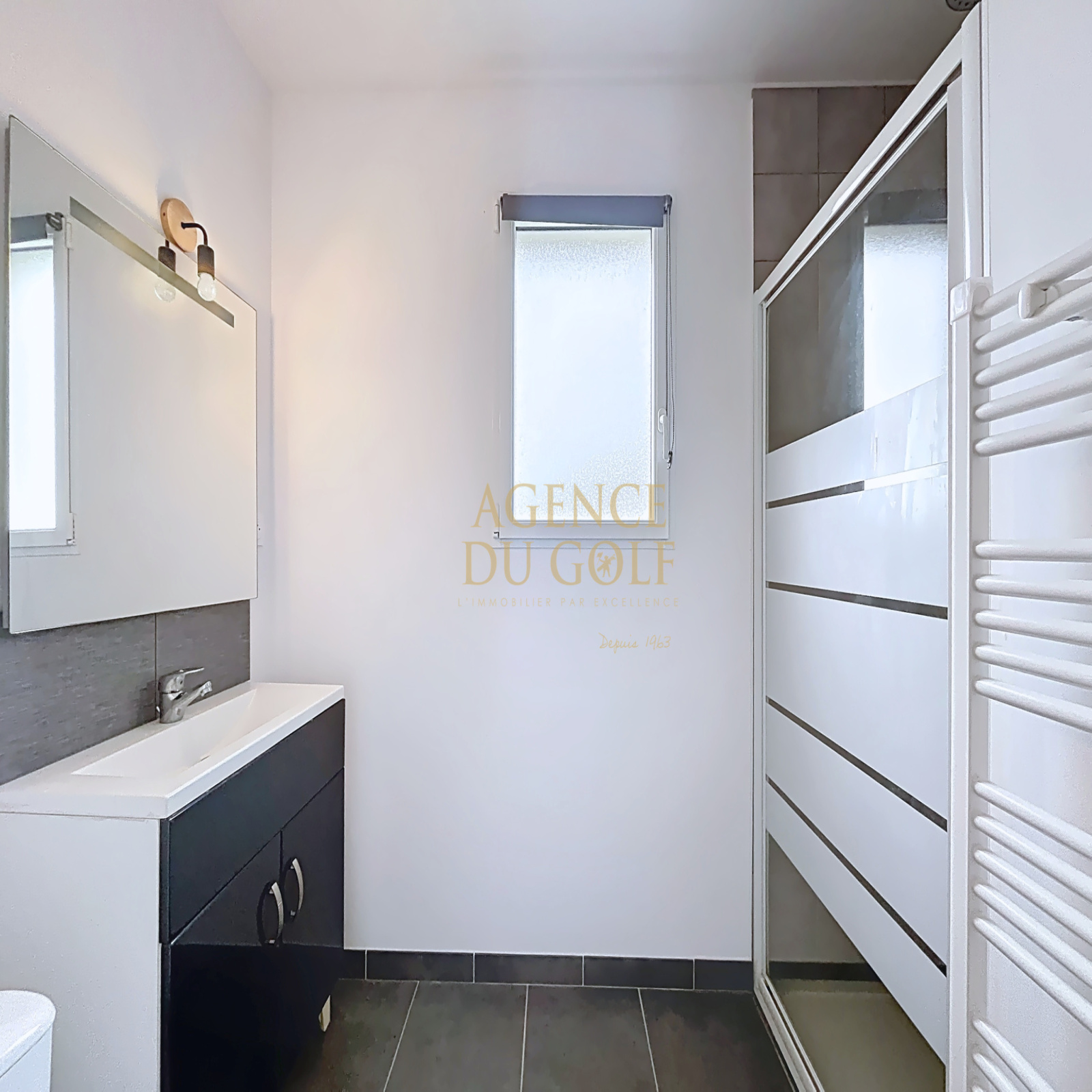 - Un spacieux séjour de 43m2 avec grande baie vitrée donnant accès à la terrasse, Une cuisine américaine entièrement équipée, ouverte sur la pièce de vie, Un cellier attenant à la cuisine, Un WC séparé.