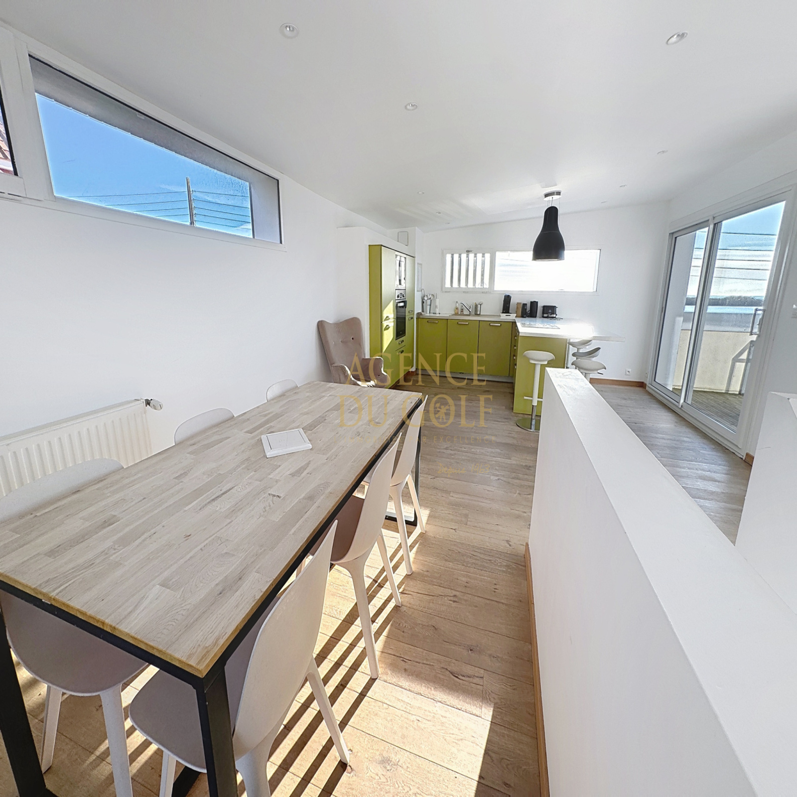 La cuisine, généreuse et fonctionnelle, s’intègre harmonieusement à cet espace convivial, idéale pour recevoir et partager des moments privilégiés.