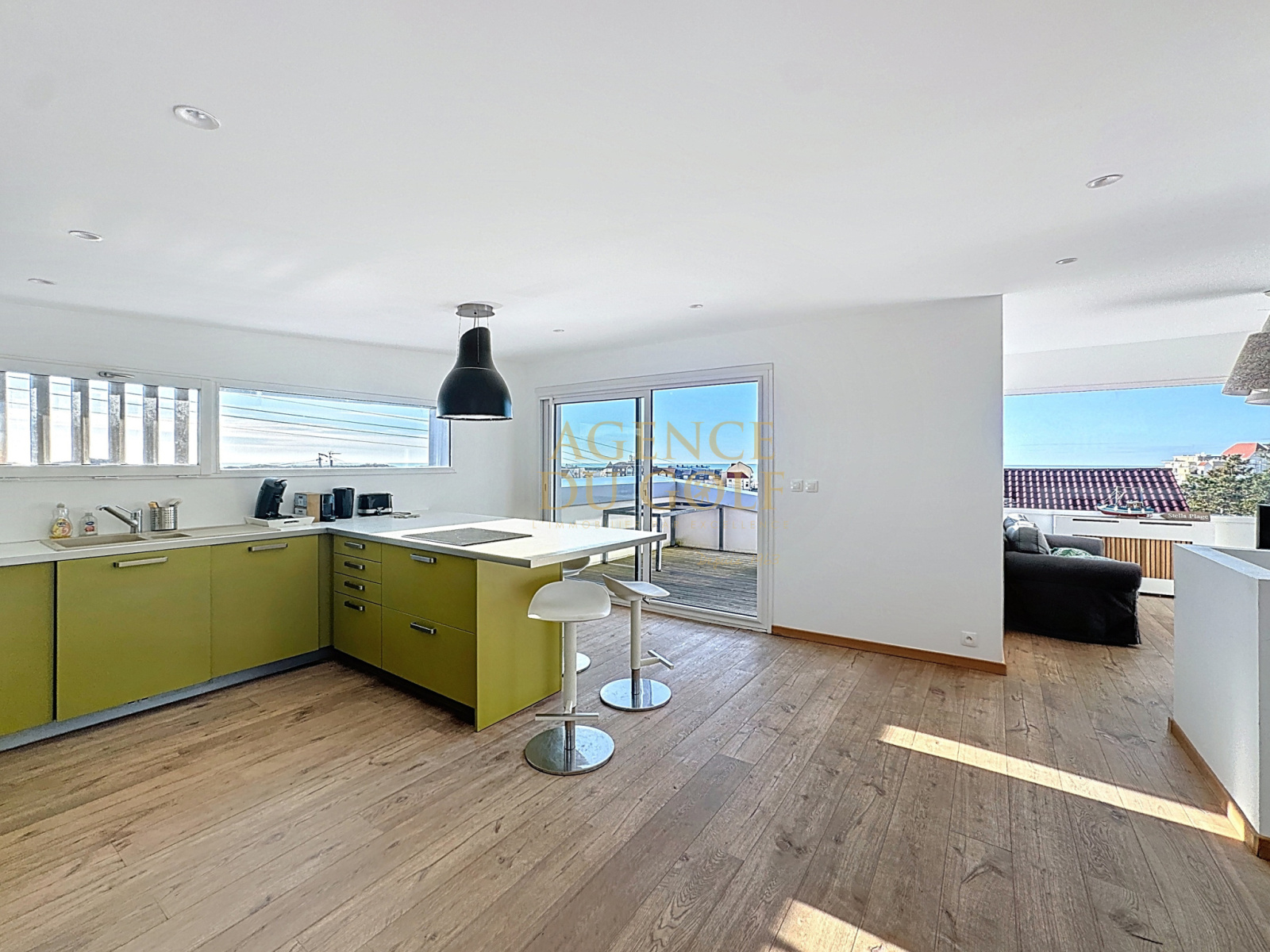 Elle séduit dès les premiers instants par son architecture soignée et la qualité de ses prestations. Pensée pour profiter pleinement de la lumière et des vues, elle propose un espace de vie en étage, lumineux et ouvert, où les larges ouvertures prolongent naturellement l’intérieur vers une belle terrasse exposée SUD OUEST, véritable invitation à la détente face à la mer.