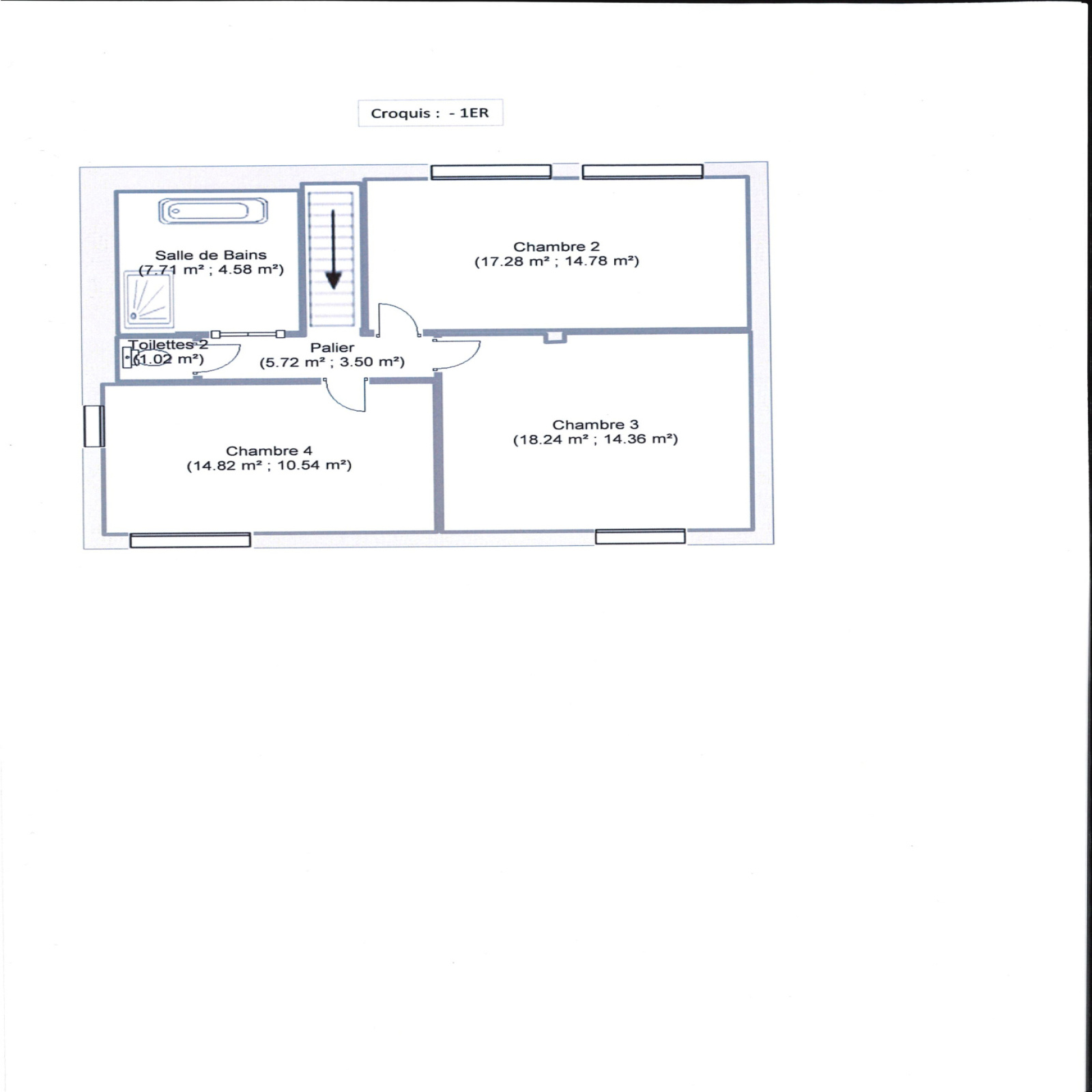 À l’étage, un palier dessert trois chambres, une grande salle d’eau ainsi qu’un second WC séparé.