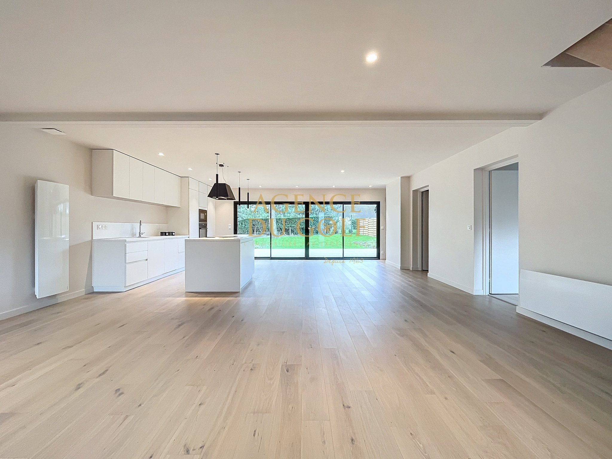Dès l’entrée, vous serez charmé par un vaste séjour lumineux d'environ 60m² avec une cuisine américaine meublée et équipée avec ilot central.