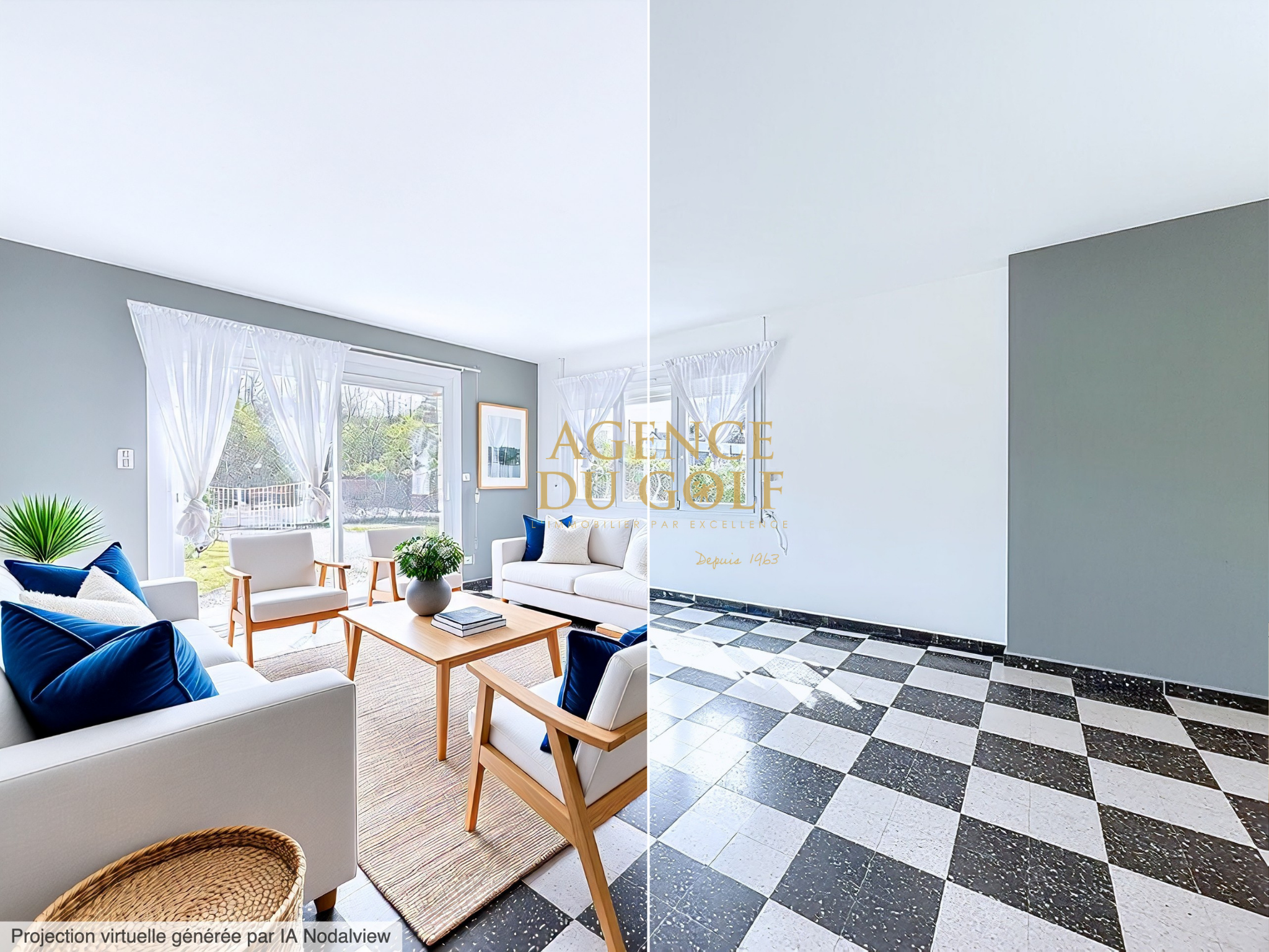 - Un salon lumineux avec de larges baies vitrées exposées sud-ouest, donnant sur le jardin