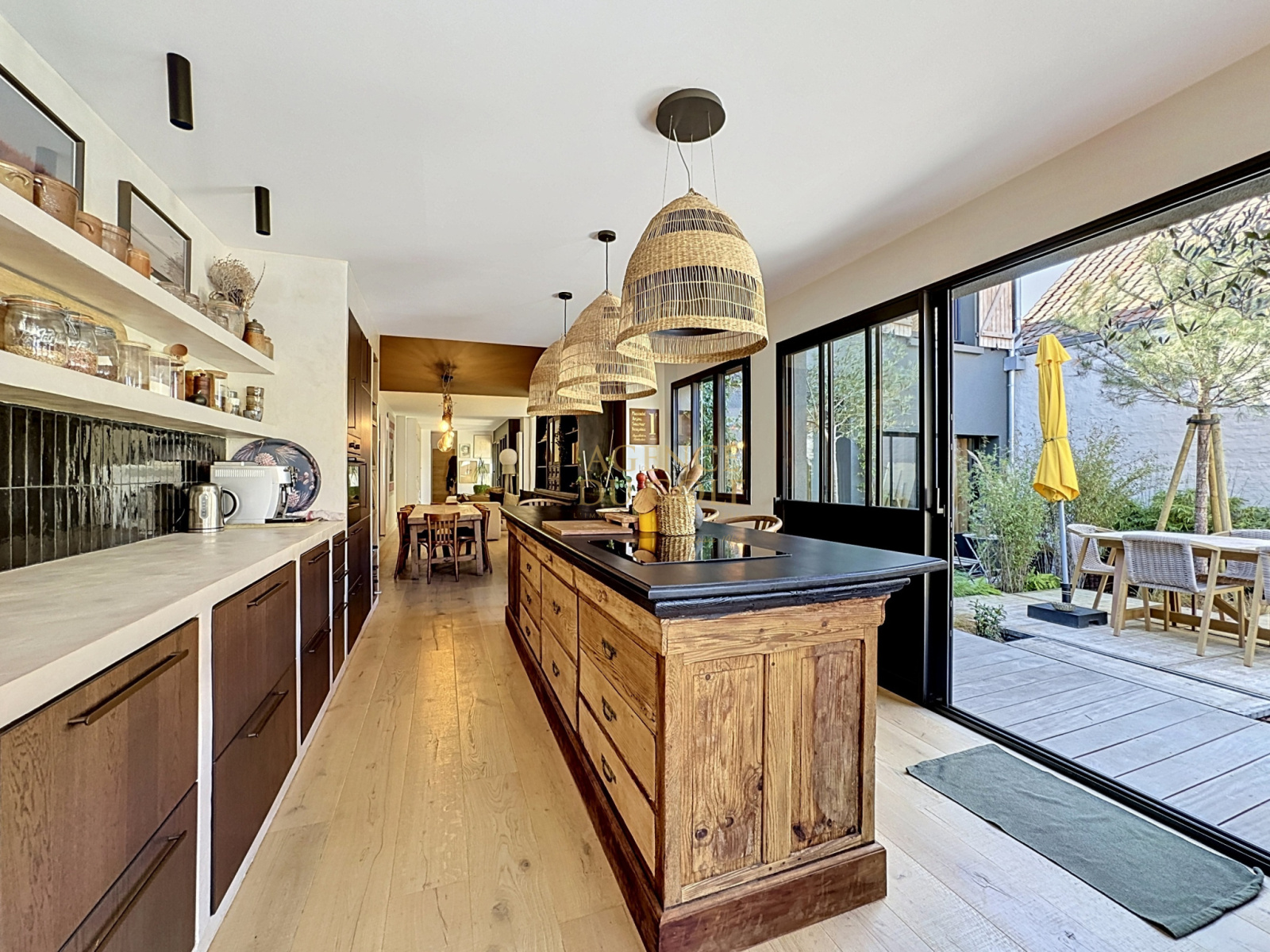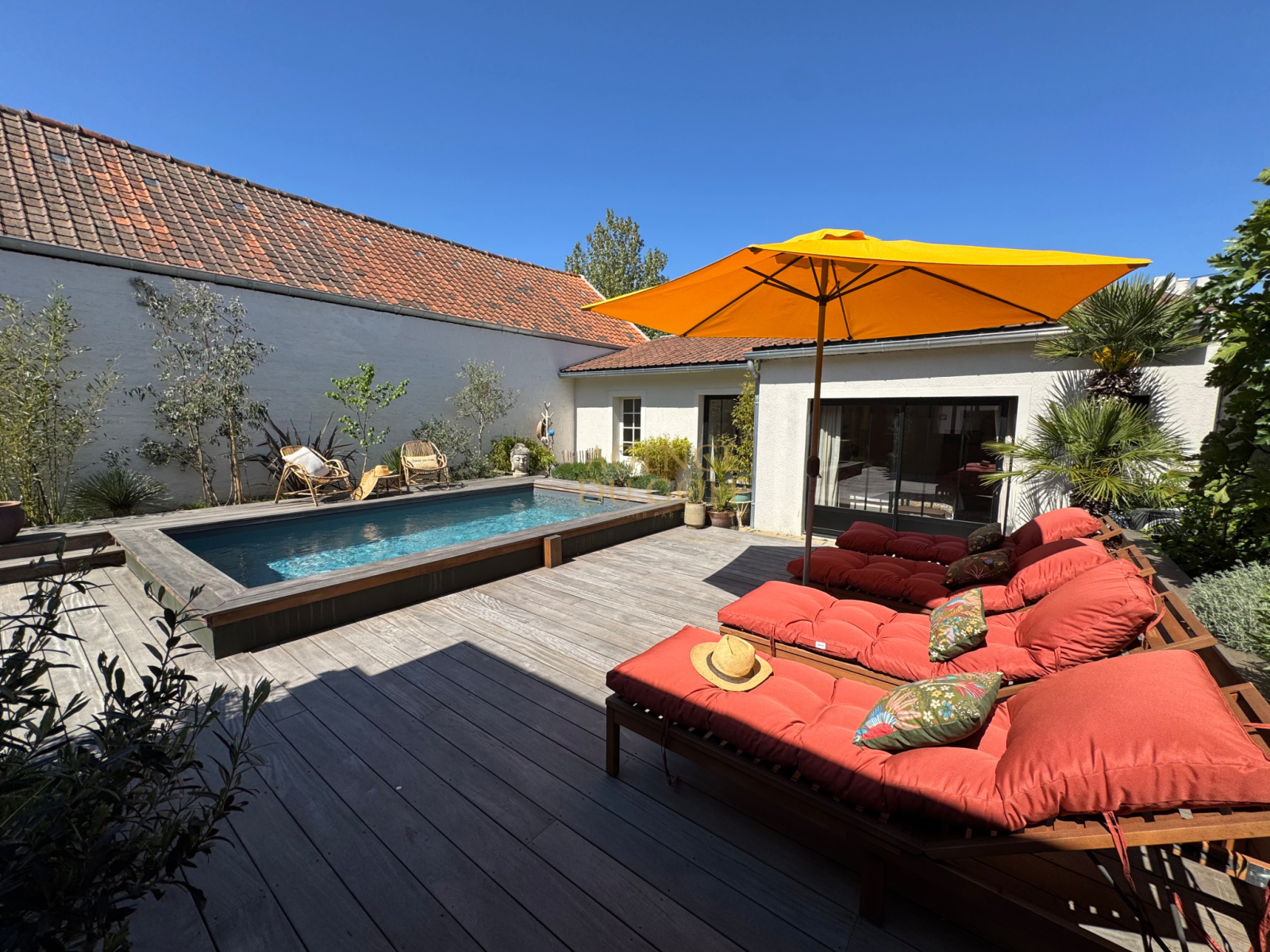 A l’abri des regards et à quelques pas de la mer comme des commerces, se dévoile une propriété singulière, inspirée de l’esprit "RIAD", où chaque espace invite à la sérénité.