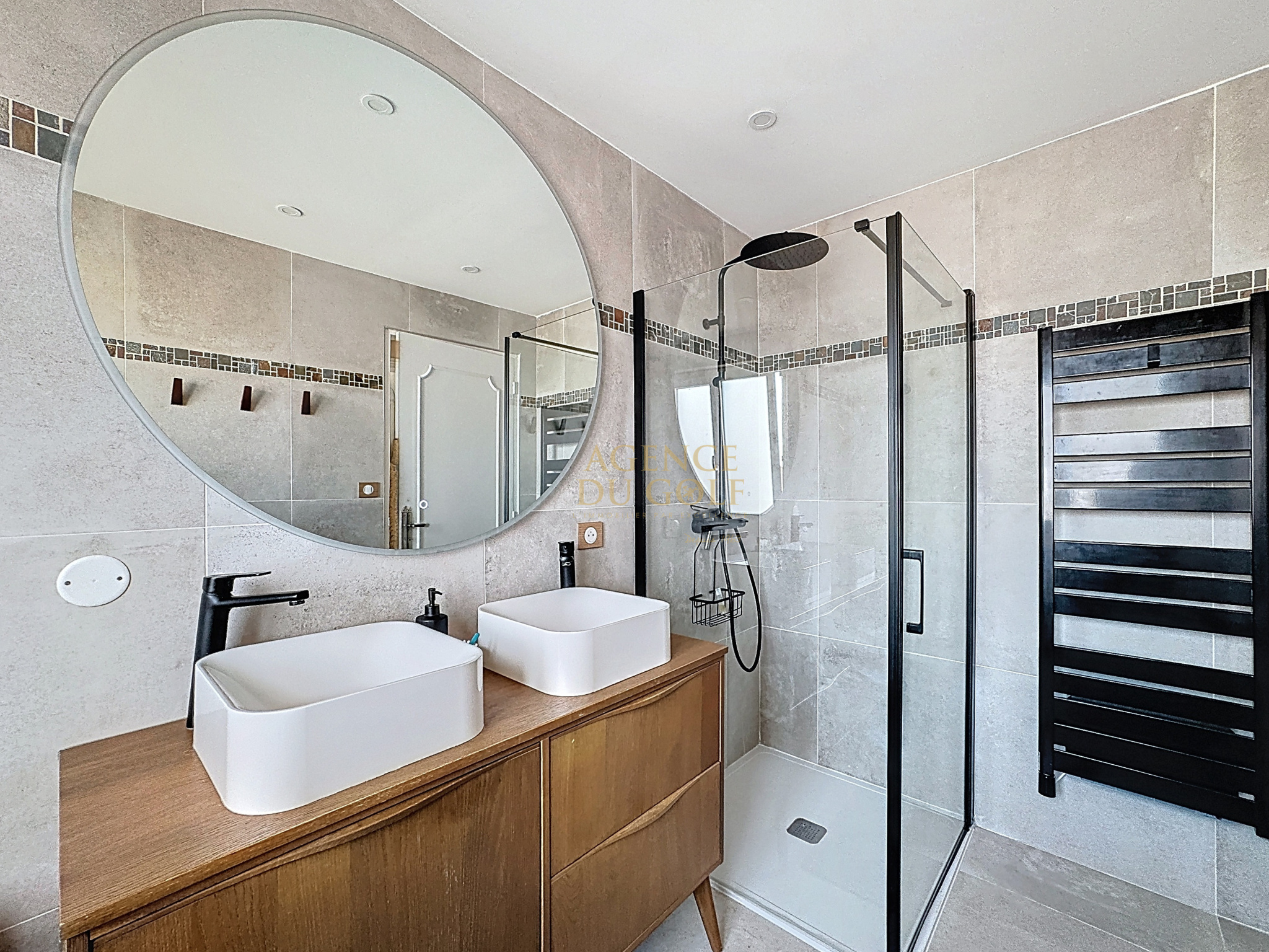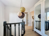A létage; 3 chambres lumineuses dont une vaste suite traversante avec dressing sur mesure. Wc et salle de bains moderne avec douche à l'italienne et baignoire.