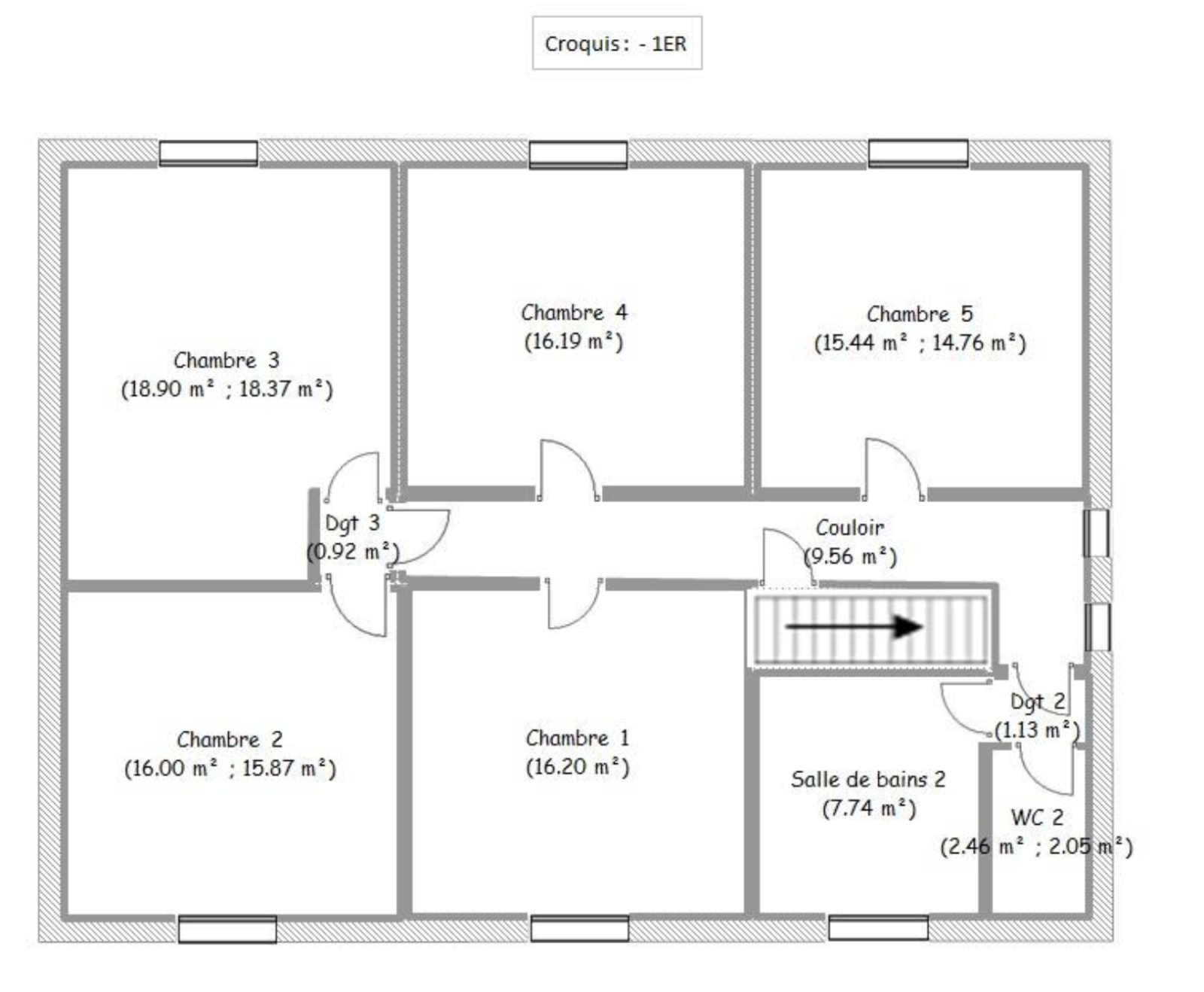 À l’étage, vous découvrirez cinq grandes chambres (de 15 à 20 m²), avec parquet d’origine, nombreux rangements et hauteur sous plafond remarquable.