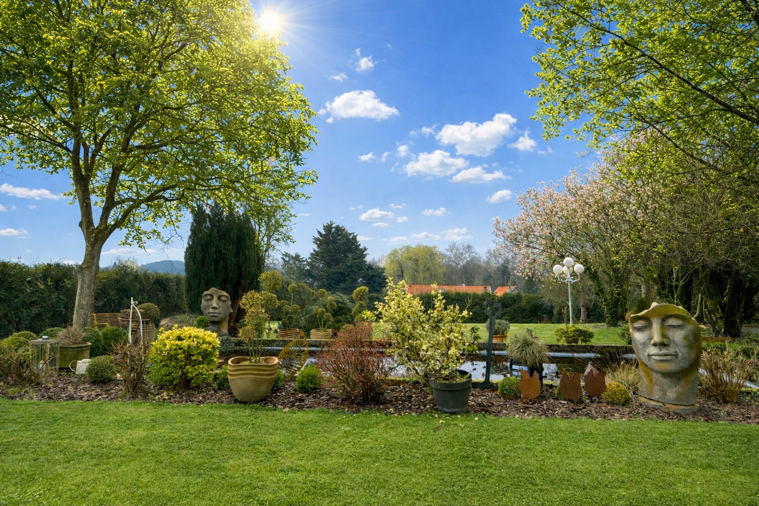 Parc entiérement clos et arboré de 5996m² avec bassin