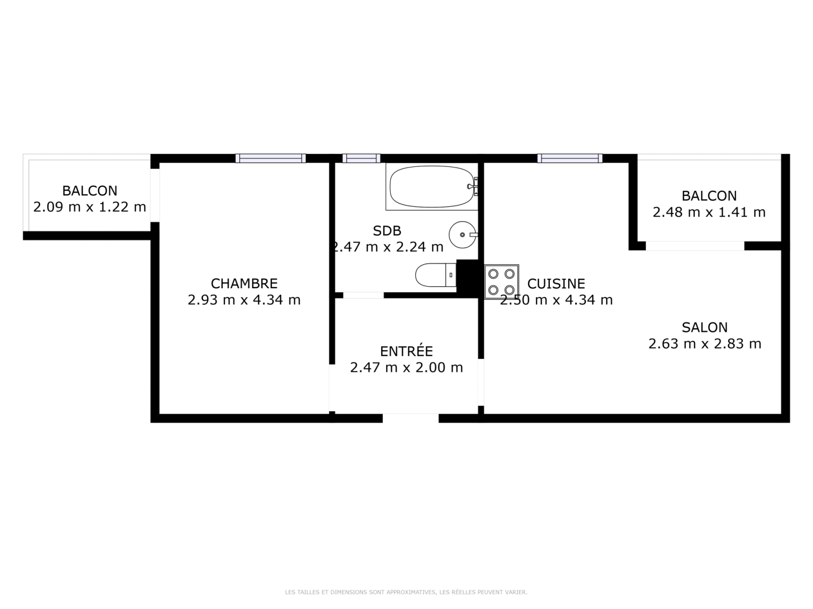 Il se compose d'un haul d'entrée donnant sur une pièce à vivre avec cuisine ouverte et équipée et un balcon avec possibilité d'aménagament avec une table à manger 4 personnes. Une salle de bain aux belles superficies et une grande chambre avec balcon exposé nord-ouest s'en suivent.