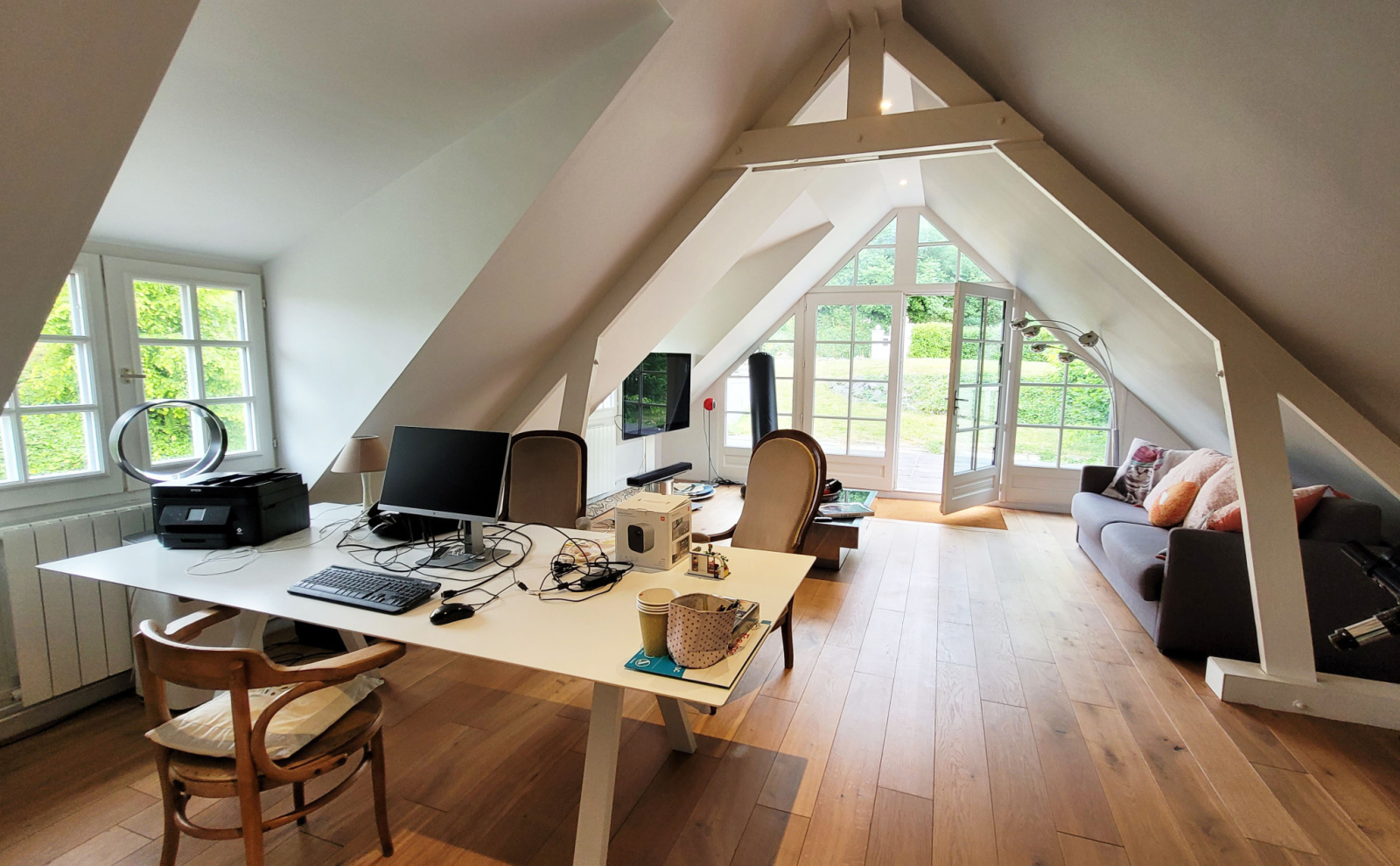 - chambre /bureau de plus de 23 m² de surface habitable (40 m² au plancher), ouvrant sur la terrasse plein ouest avec vue dégagée sur le village et la campagne environnante.