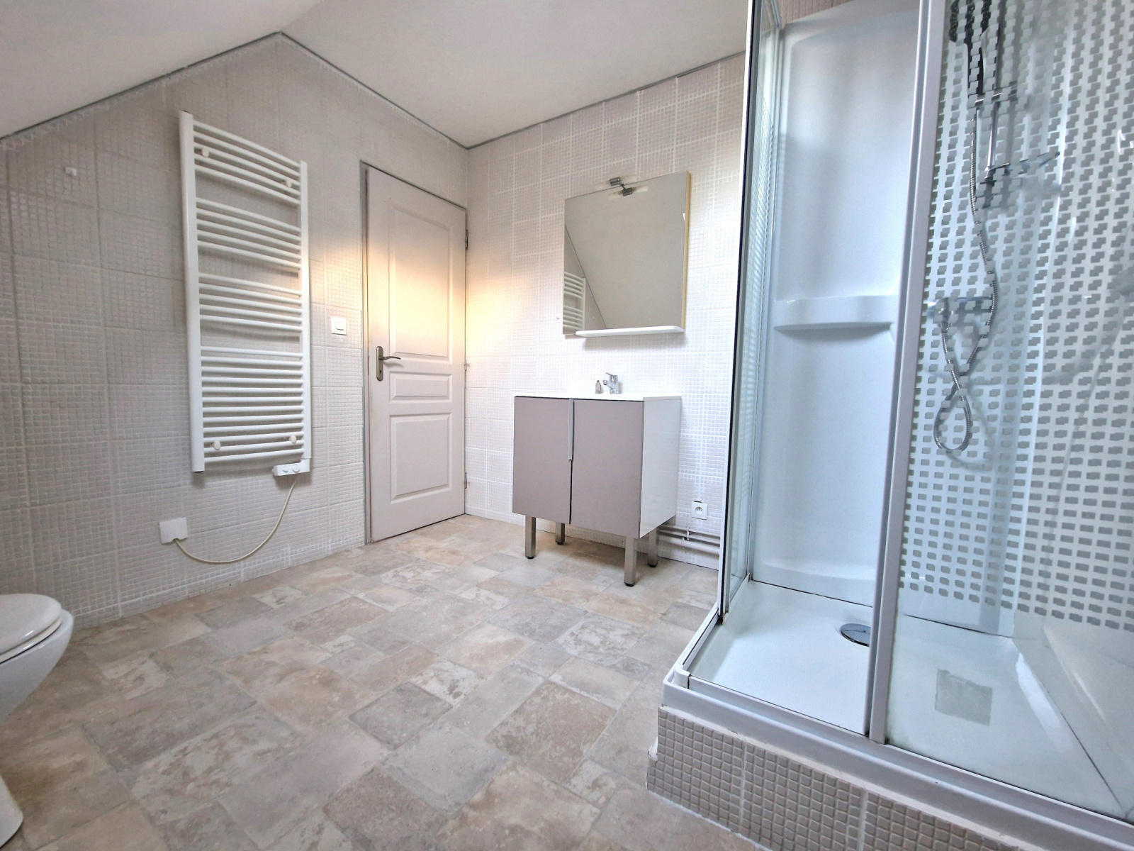 Comprenant au RDC: Une salle à manger/salon, une cuisine séparée meublée et équipée récente, un cellier, un WC.